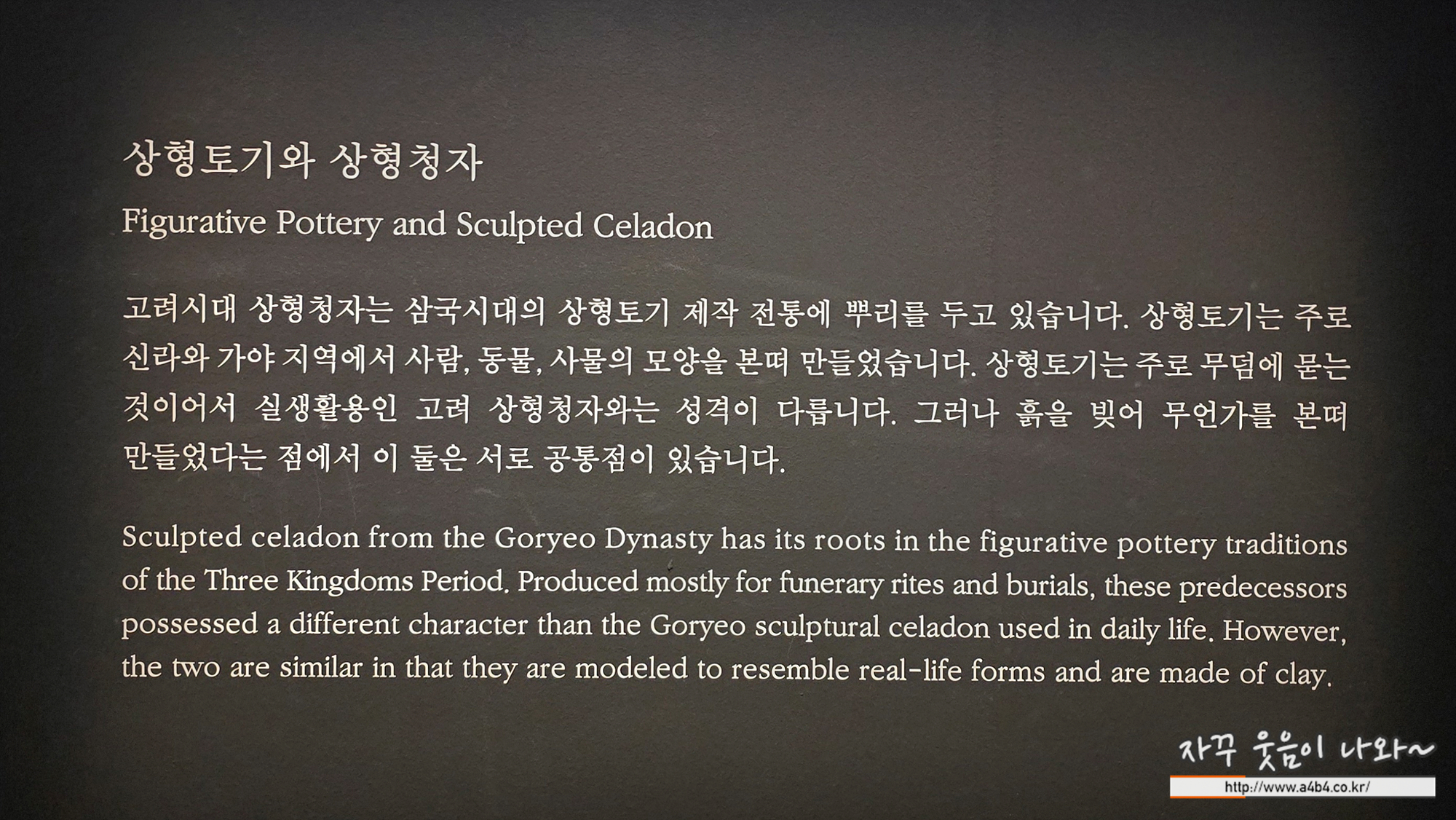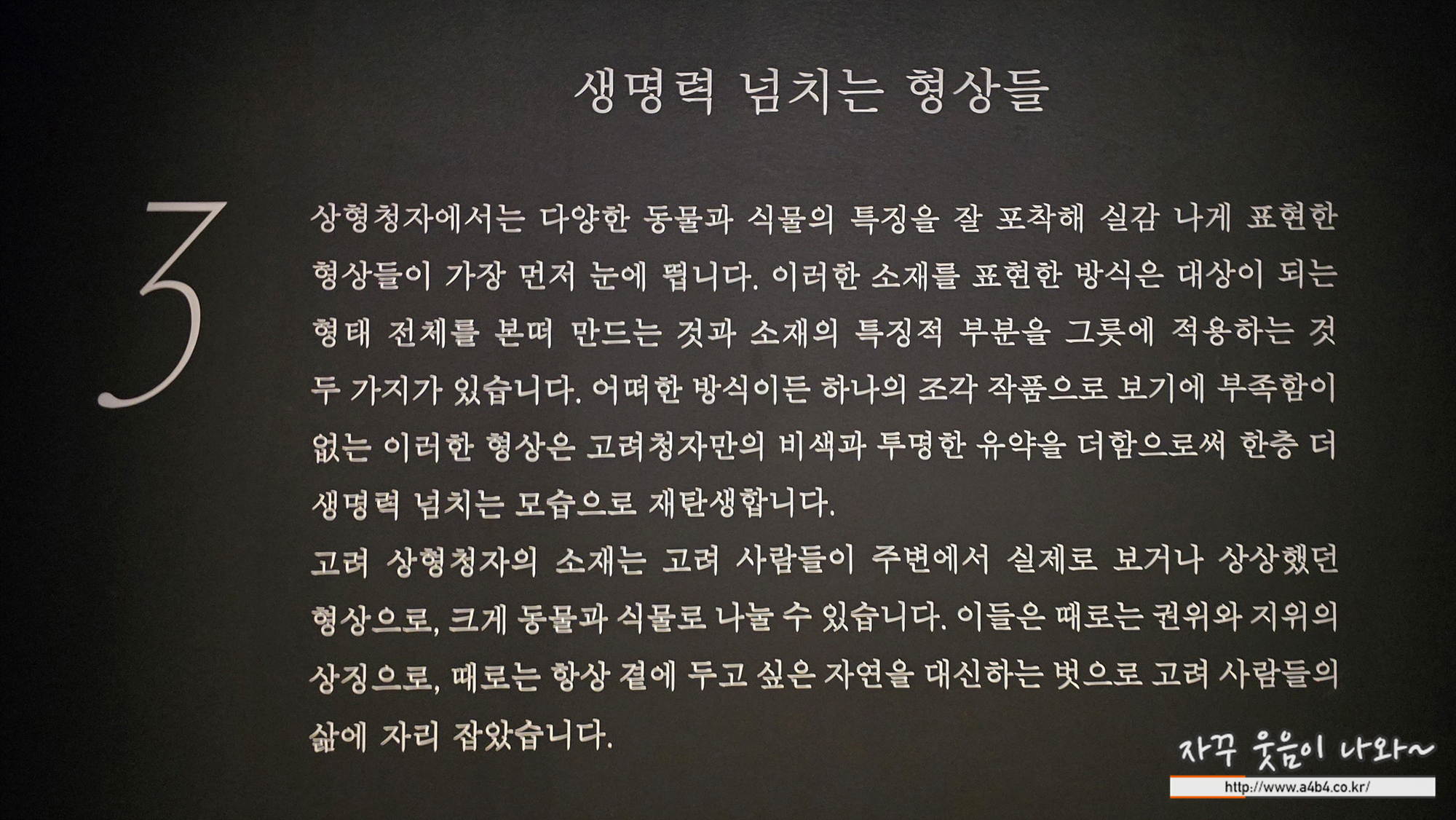 해당 주자는 리움 미술관에 전시되어 있는 작품으로 기억하고 봤던것 같은데요. 이번 '푸른 세상을 빚다, 고려 상형청자' 전시회를 위해 국립중앙박물관으로 놀러온 것 같네요.