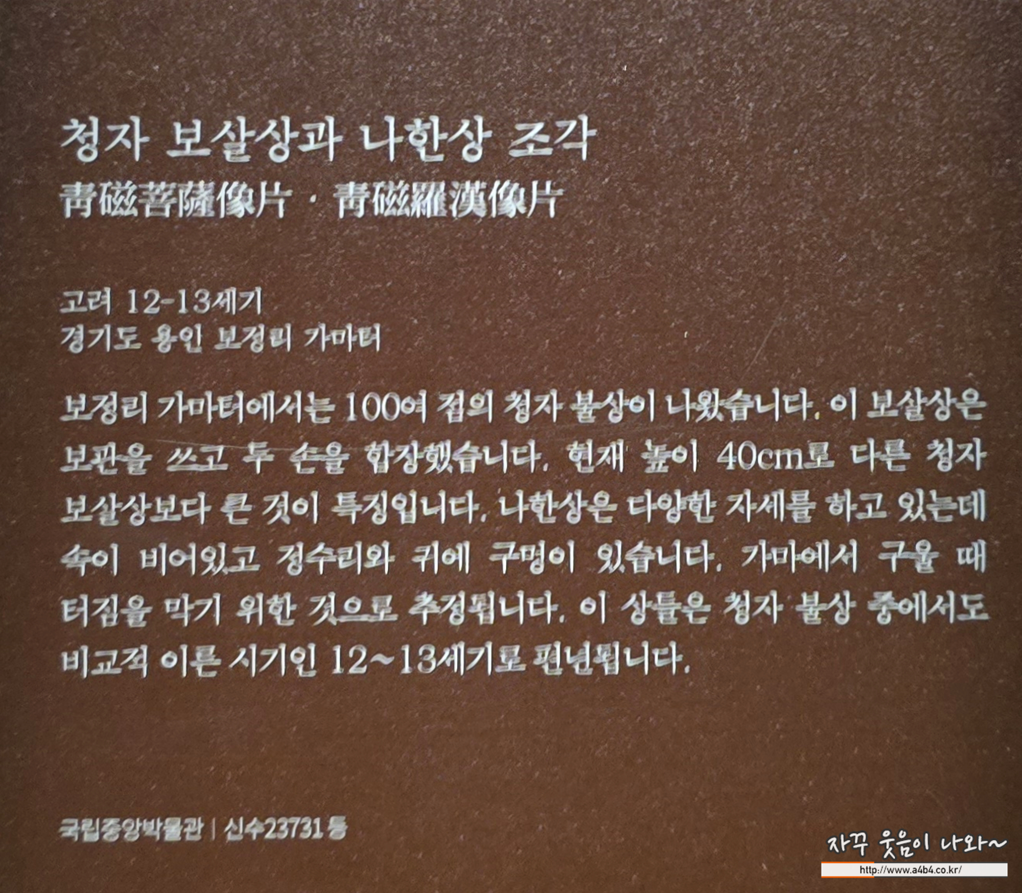 고려 12세기 작품으로 두 점 모두 보물로 지정되어 있다. 익살스러운 모양이 내 눈길을 끄는...