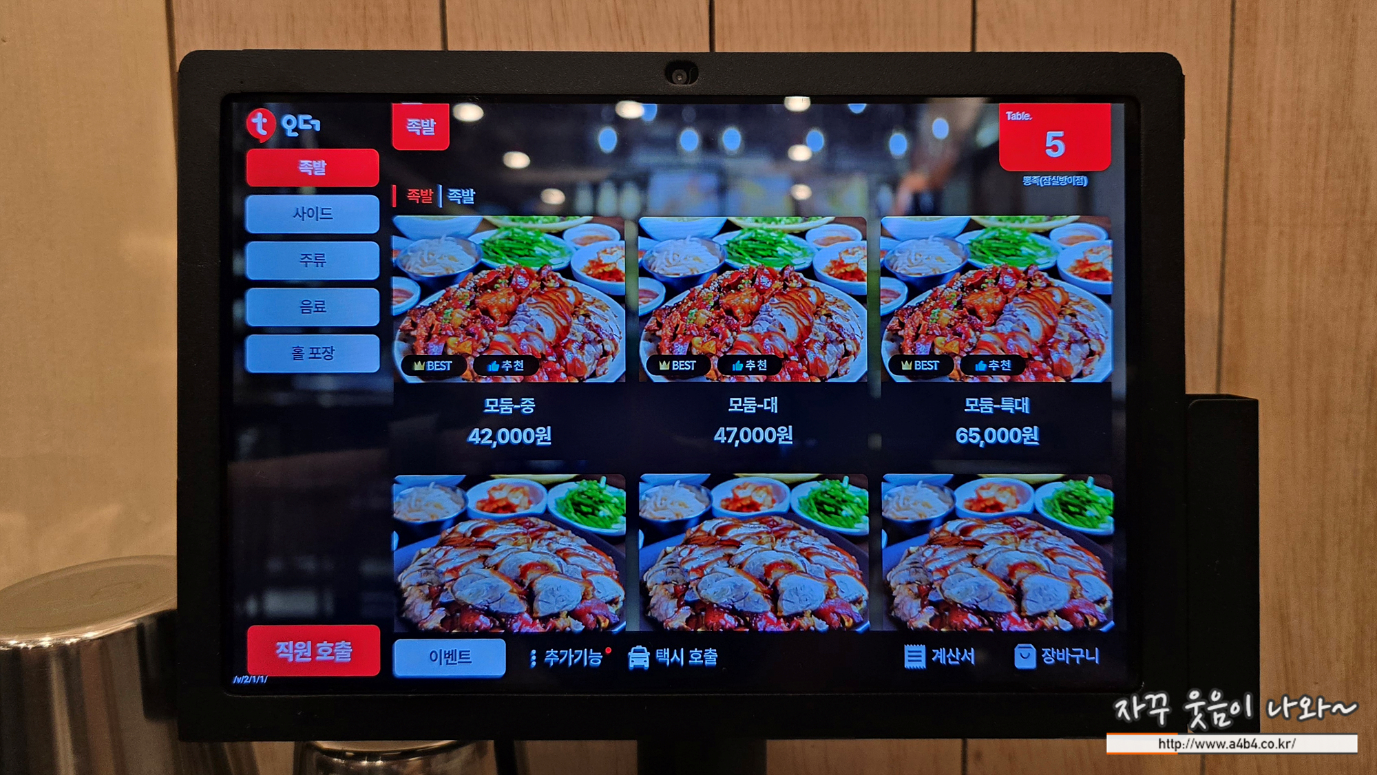 주문은 테이블에 설치된 태블릿으로 주문하고요. 계산은 나가시면서 카운터에서 하시면 됩니다. 이곳도 T오더가 장악 했군요.