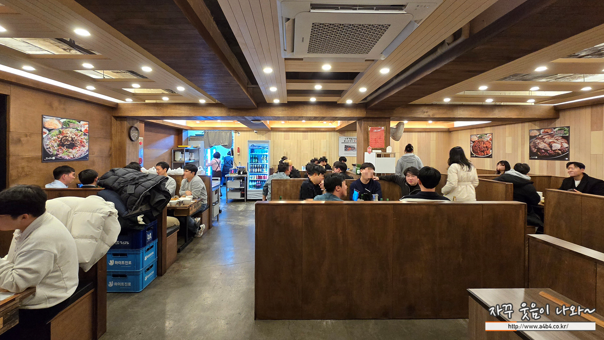 실내 깔끔함 테이블 좁지 않음, 옆 테이블과 분리되어 있어 좋음. 다만 술손님이 많다 보니 다소 소란스러움