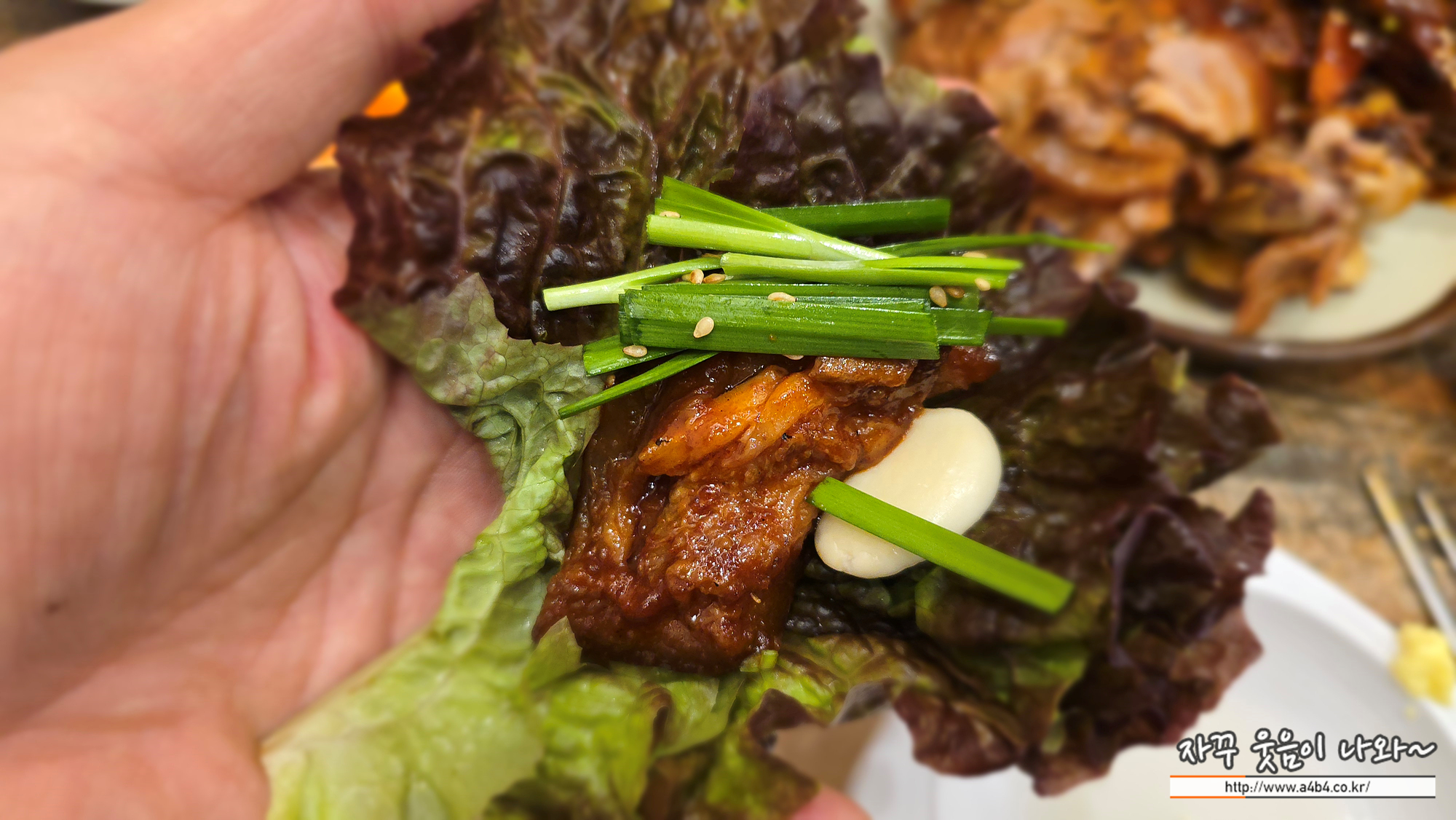 방이동 맛집 뽕족 매운족발은 부추와 마늘과 함께 상추쌈으로 드시는 것도 맛있습니다.