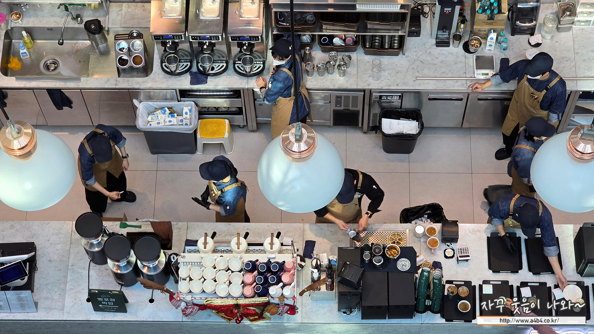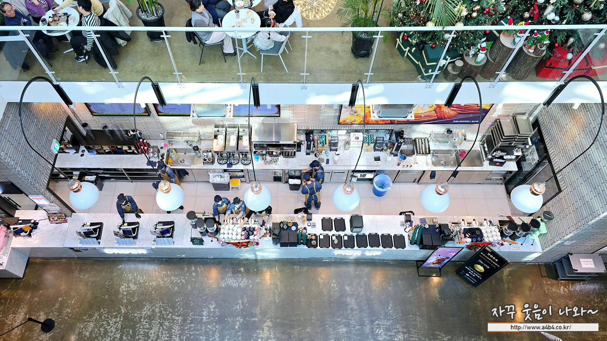 맨 윗층 풍경입니다. 매장 전체를 내려다보는 재미도 있습니다. 1층에서 엘리베이터를 타고 올라오시는 것을 추천 드립니다.