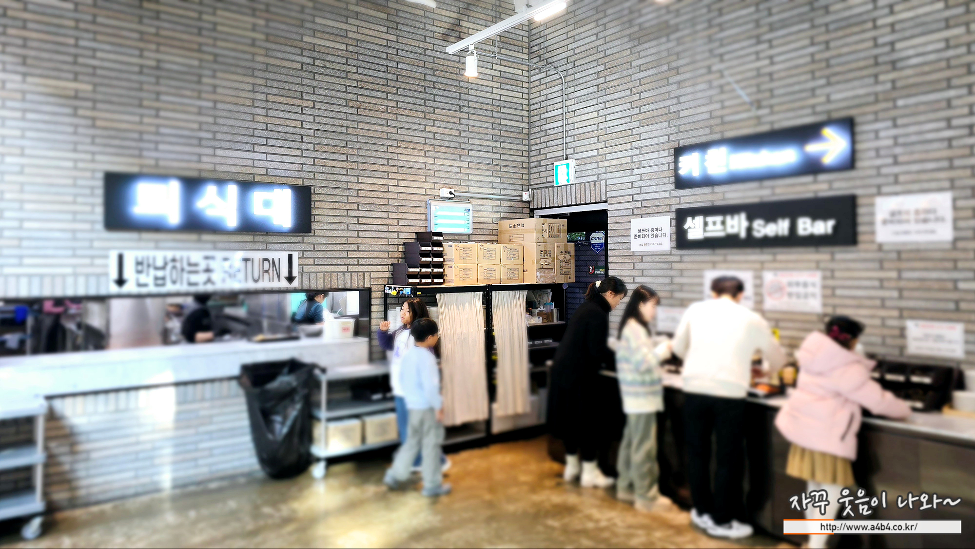 앞접시와 물티슈와,냅킨, 빨대, 포크, 나이프 등은 셀프로 챙기셔야 합니다. 식사가 끝나고 인천 송도 포레스트 아웃팅스 각 층에 있는 퇴식대에 식기와 쟁반을 반납해야 합니다.