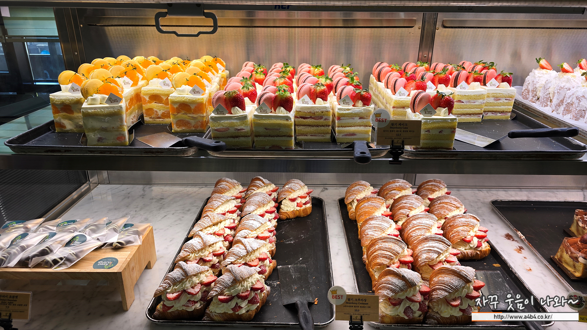딸기 케이크, 딸기 크로아상 각각 12,500원, 10,000원, 망고 크루아상 11,000원