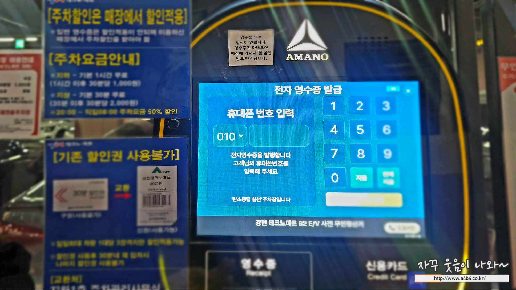 해당 시간을 초과할 경우 강변 테크노마트 주차장에 있는 무인 주차정산기에서 주차요금 추가결제하시면 됩니다.