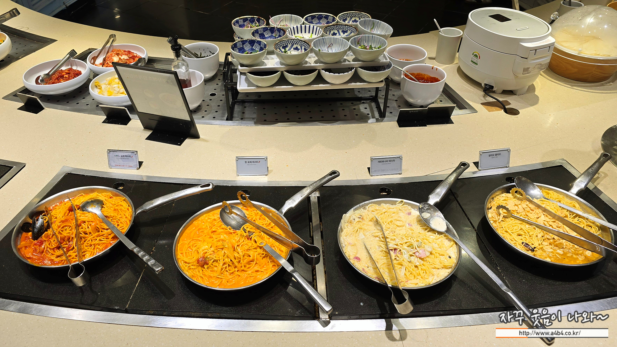 파스타도 4가지 종류가 준비되어 있네요. 아이들이 좋아하는 에슐리 퀸즈 메뉴코너 중 하나입니다.