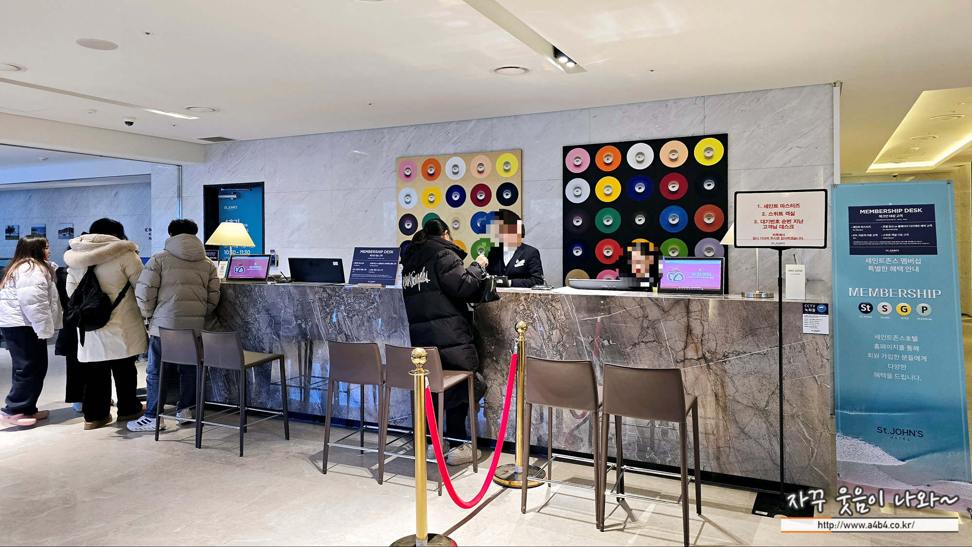 아래 로비데스크의 혼잡에 비해서 2시간 먼저 편한 체크인이 가능한 부분은 세인트존스 호텔 펫룸 다이렉트 예약의 매력 중 하나입니다.