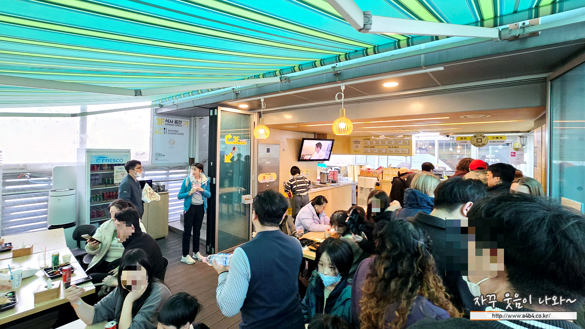먹고싶은 음식들을 모두 구입하고, 다시 통인시장 엽전을 구입했던 엽전도시락 건물로 다시 옵니다. 통인시장 도시락카페는 2층과 3층에 테이블이 마련되어 있는데요. 조금 복잡하기는 하지만 그래도 그럭저럭 오래 대기타지 않고 식사 가능합니다. 저희는 3층으로 이동