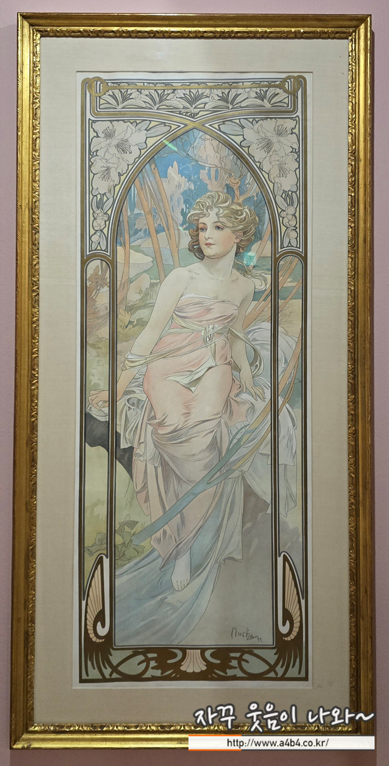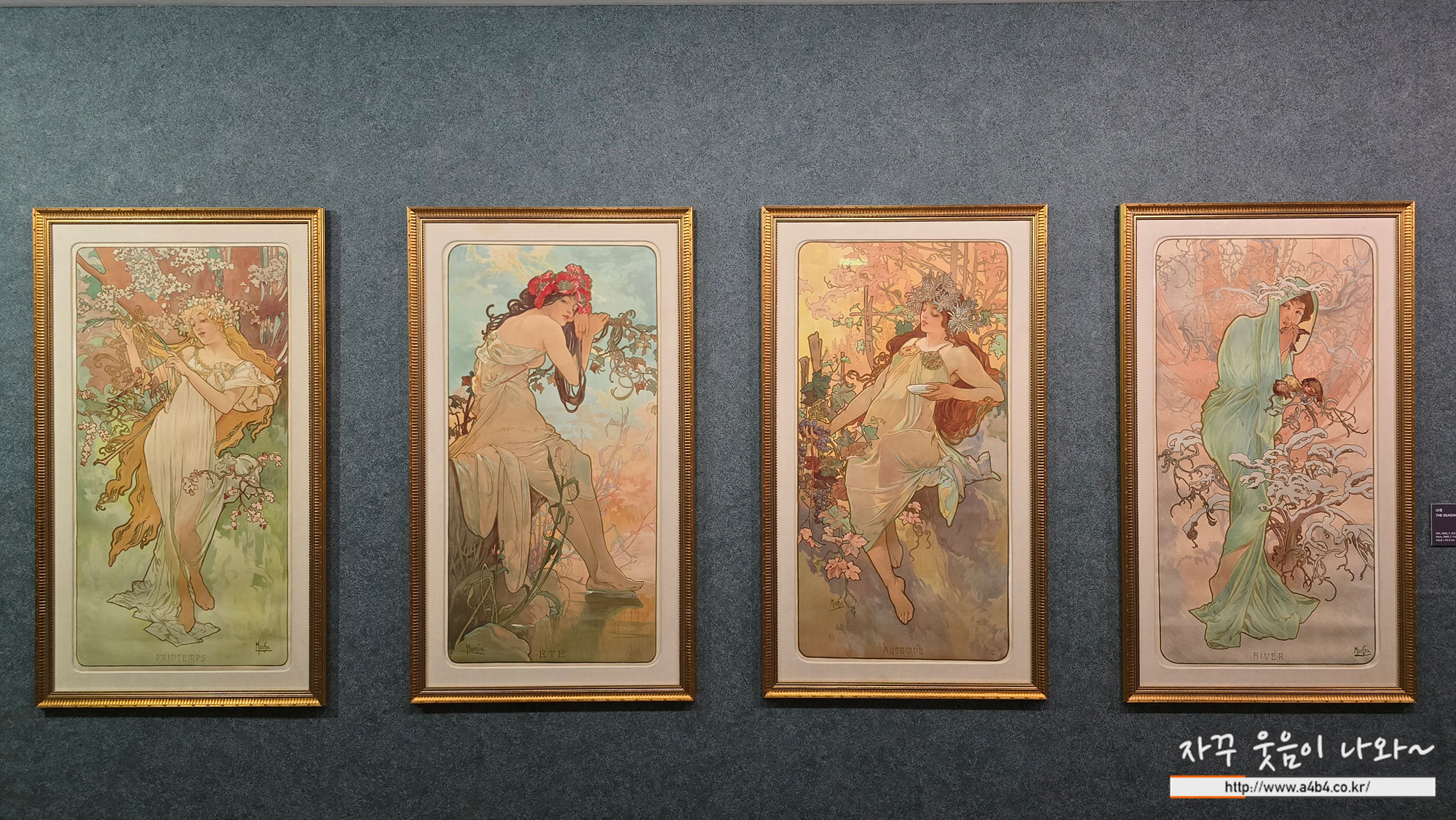 왼쪽에서 두 번째 작품이 이번 아르누보의 꽃 : 알폰스무하 원화전 티켓 등에 사용된 대표작인 여름입니다만...