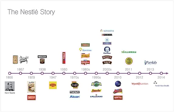네슬레의 역사는 1866년 앵글로-스위스 연유 회사가 유럽 최초 연유 공장을 스위스에 설립하는 것에서 시작됩니다. 1867년에는 앙리 네슬레가 획기적인 영아식을 개발했으며, 1905년 앵글로-스위스와 합 병을 통해 현재의 네슬레 그룹이 탄생되었습니다.