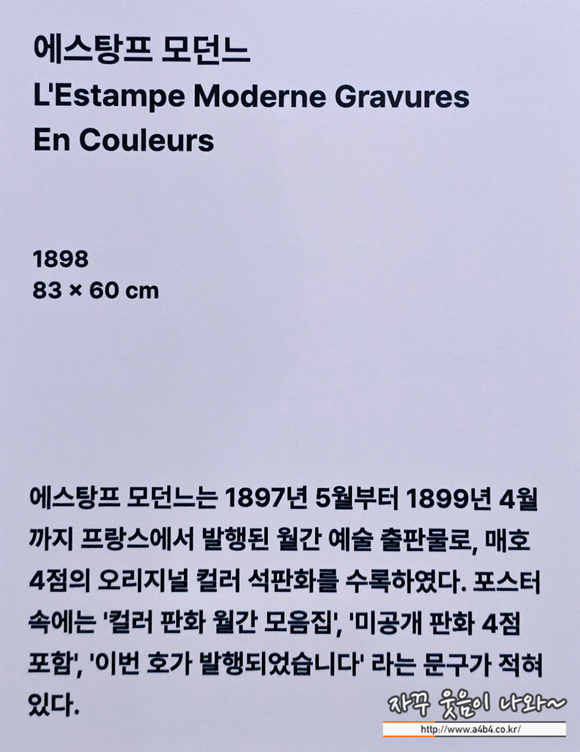 역시나 아르누보의 꽃 : 알폰스무하 원화전에서 이에 대한 설명이 전무한 부분은 상당히 아쉽네요. 좀더 감상하기 편하게 공간이 할애되었으면 얼마나 좋았을까...