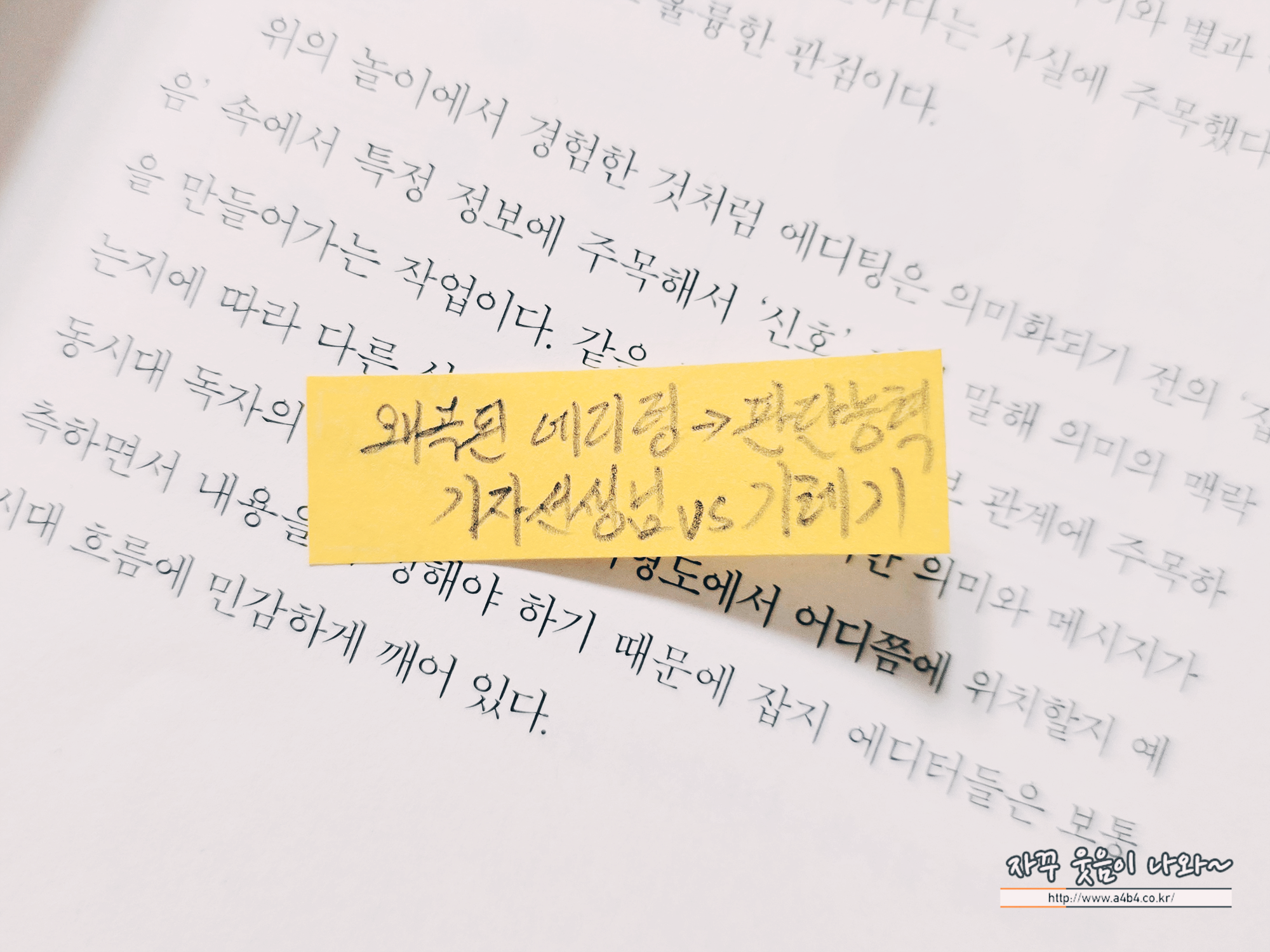 이번 최혜진 작가의 '에디토리얼 씽킹 모든 것이 다 있는 시대의 창조적 사고법'에서 일부는 공감하기 어려분 부분들도 종종 있더라는... 약간은 자극적인 에디팅이 좋은 편집이라는 생각을 갖게 만드는 것 같기도.