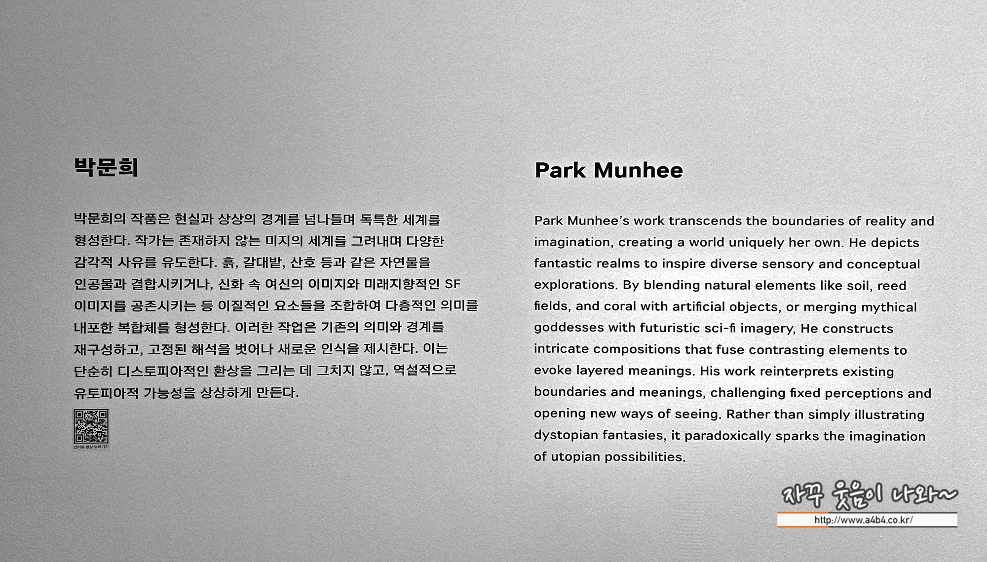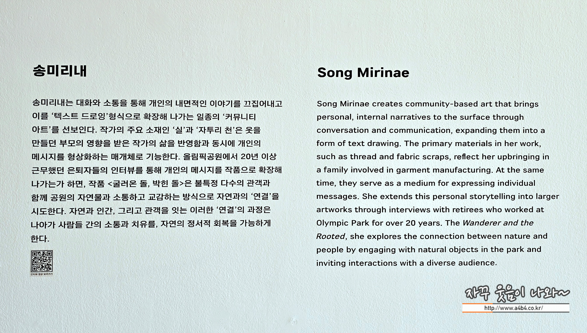 조금 더 자세한 설명들이 있었다면 좋았을 것 같네요. 각각의 작가 인터뷰 유튜브 영상 보다는 오디오 가이드가 제공 되었어면 어땠을지...