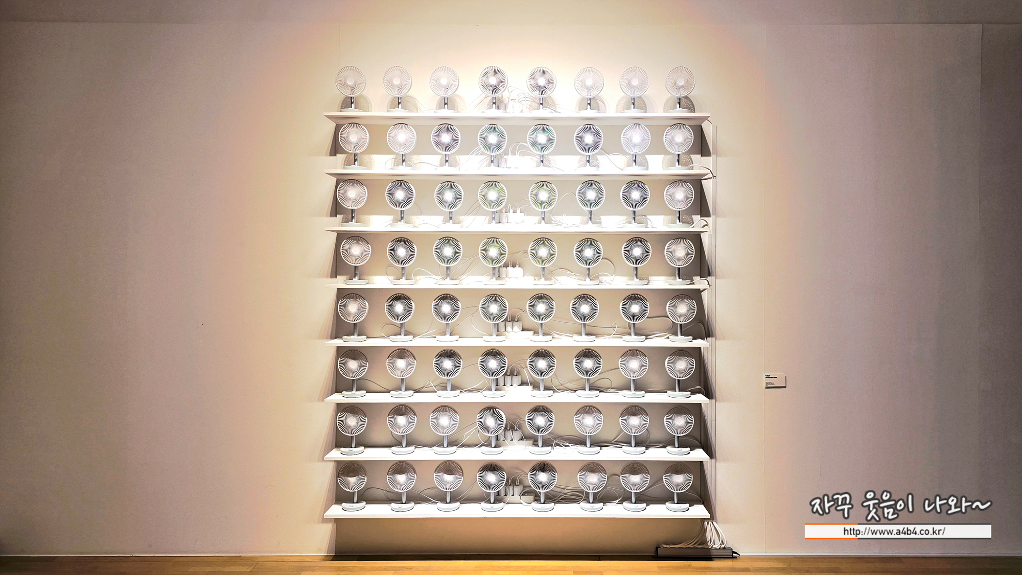 그리고 각 선풍기의 바람색을 다르게 설정해서 자연의 바람을 제연해 보고자 했는데요. 저에게는 이번 공원의 낮과 밤 - 만들어진 풍경, 재생되는 자연 전시회 전시장이 너무나 더워서 이 공간에서 정말로 공원의 자연에 있는 느낌을 받았네요