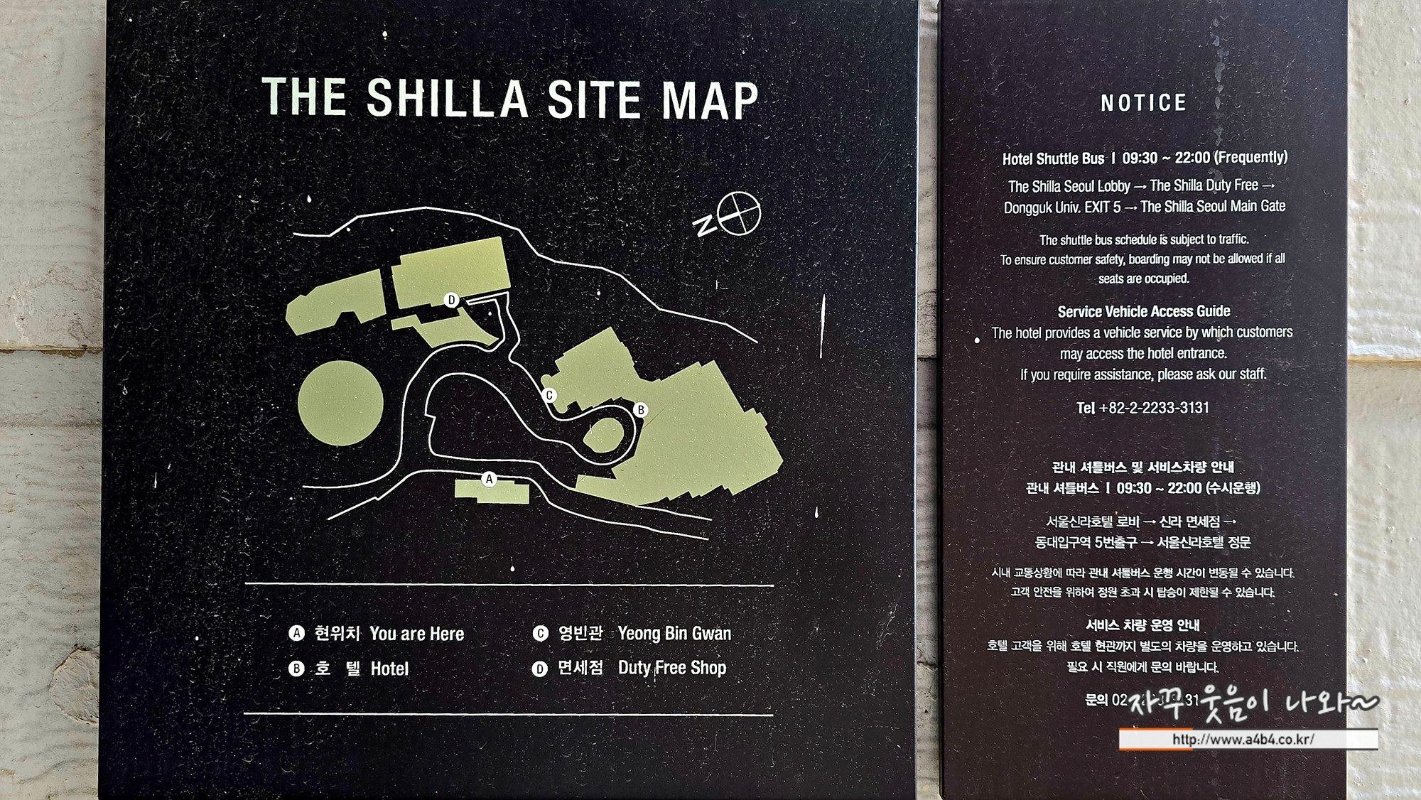 방문시 발렛파킹 하신다면 양 주차장 방향이 아닌 신라호텔 문을 지나 왼쪽 언덕 '호텔 / 면세점' 방향으로 언덕을 올라오세요.