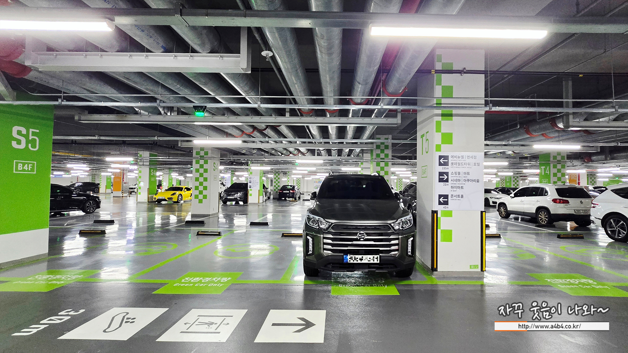 지하4층 롯데월드몰 주차장에는 친환경차량 주차구역이 많이 배정되어 있습니다.