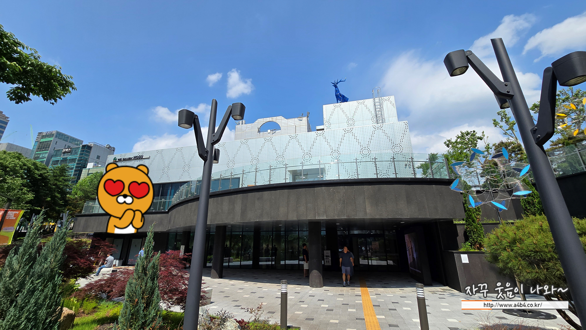 더 갤러리 호수 개방화장실은 아래 건물 로비층을 보고 왼쪽에 위치해 있습니다. 라이언이 있는 곳이 바로 화장실입니다.