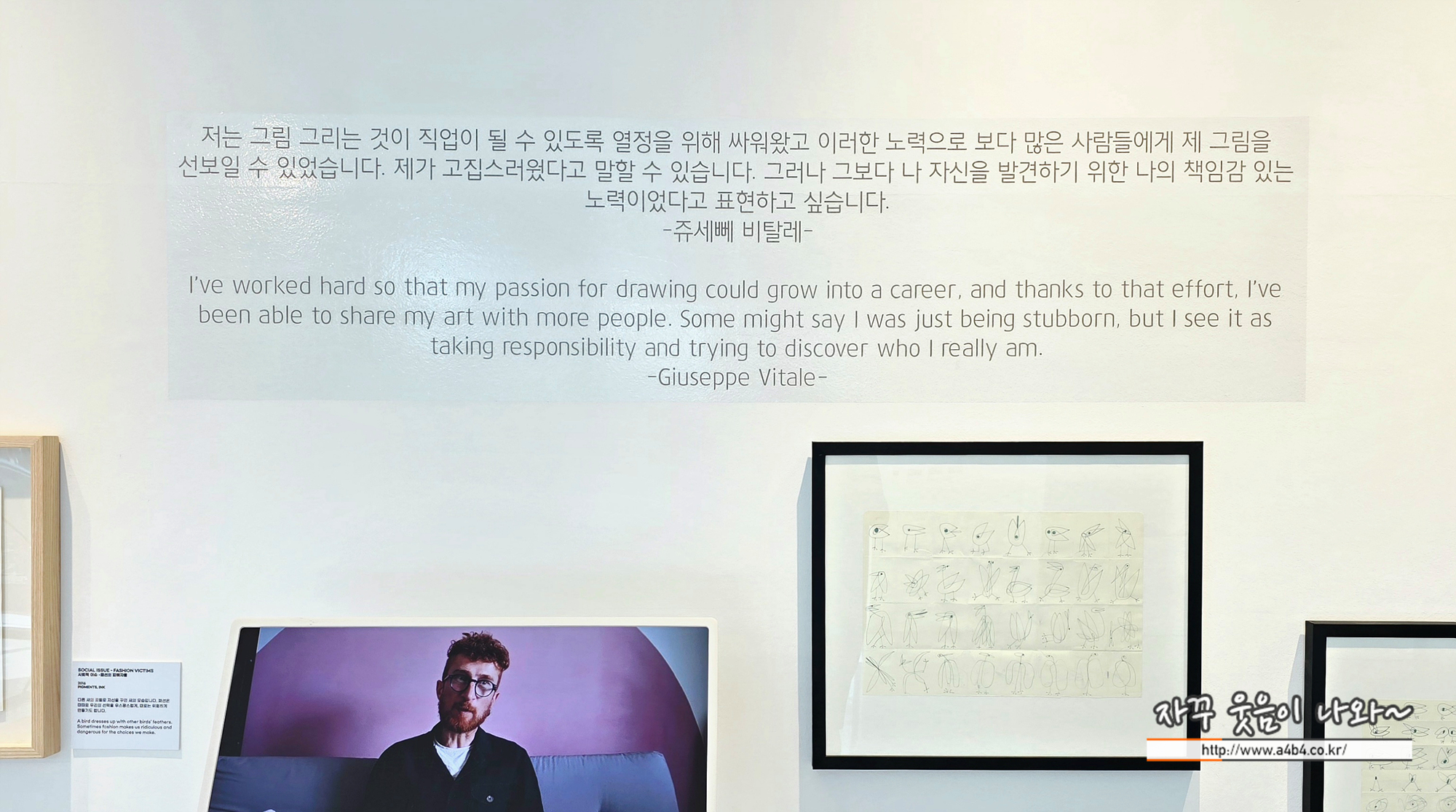 주세뻬 비탈레 특별전 레가미 더 호수 전시회 제 2전시실에는 렘가미 연작은 물론 작가가 생각하고 작업하는 세계를 이해할 수 있도록 구성되어 있습니다. 벽면의 QR을 인식하면 전체적인 작품 주성을 확인 할 수 있습니다.