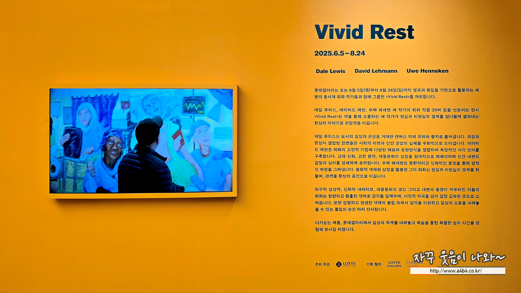 서울 송파구 잠실롯데월드몰에 위치한 에비뉴엘아트홀에서 이번주부터 열리고 있는 무료 전시회인 <Vivid Rest>展 관람후기 입니다. 특히 다소 낮선 영국과 독일의 현대 미술을 만나볼 수 있는 기회인데요.