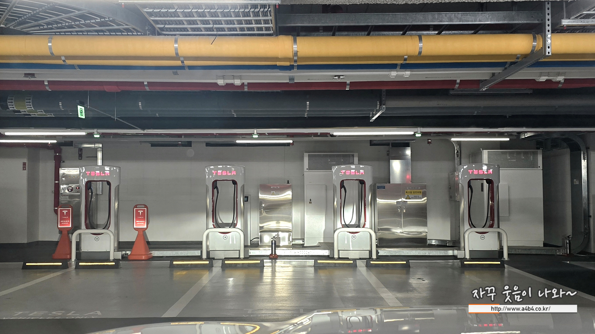 구로 디지털단지 G타워 주차장 전기차 충전소는 테슬라 충전소와 한화모티브 전기차 충전소가 있네요.