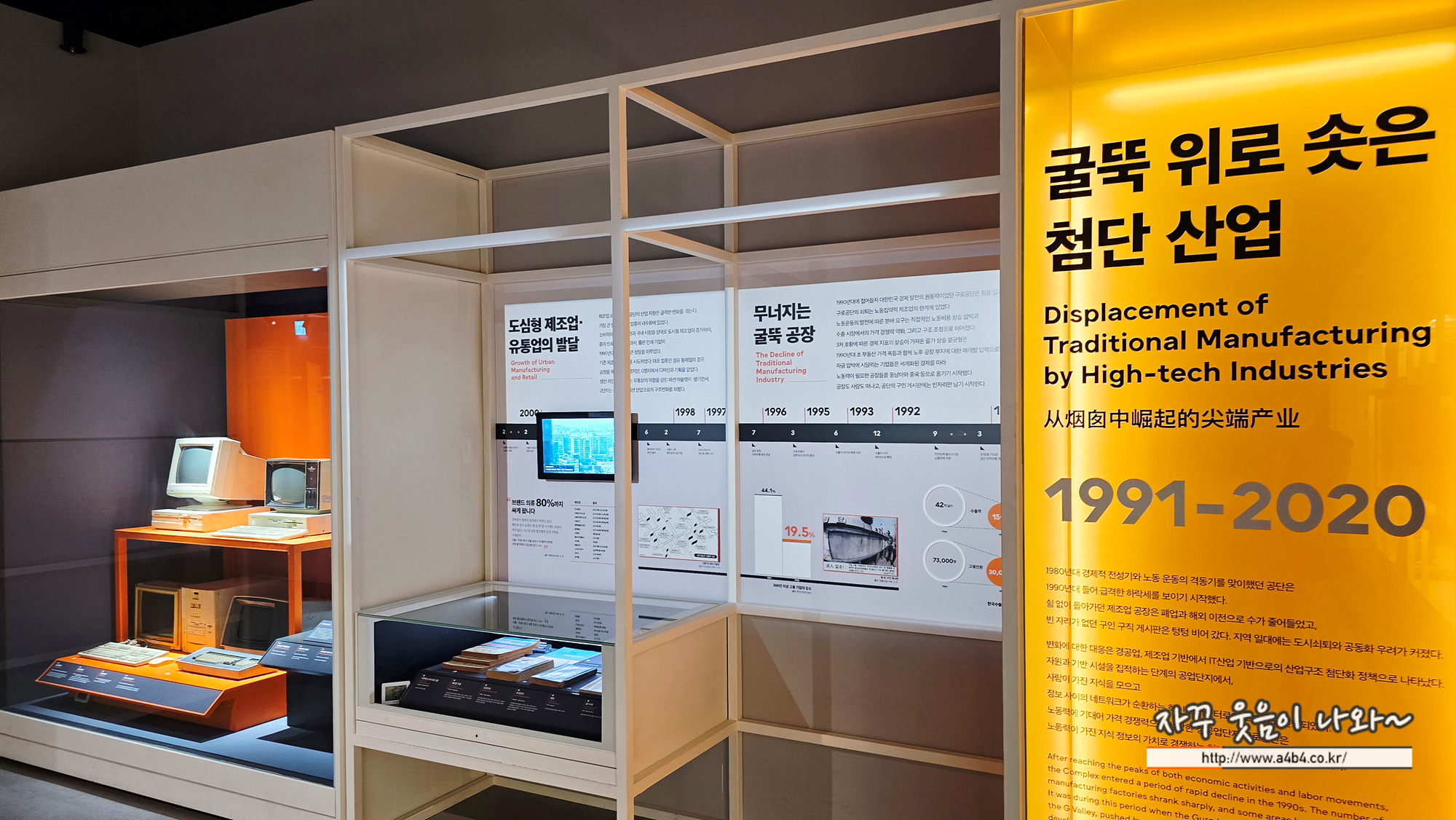 노동집약적 경공업부터 기술형 제조업 그리고 현대의 첨단 산업까지 구로공단에서 시작하여 G밸리로 변화하는 흐름은 멈추지 않는다. 멀티미디어 공간인데 시간상 패스