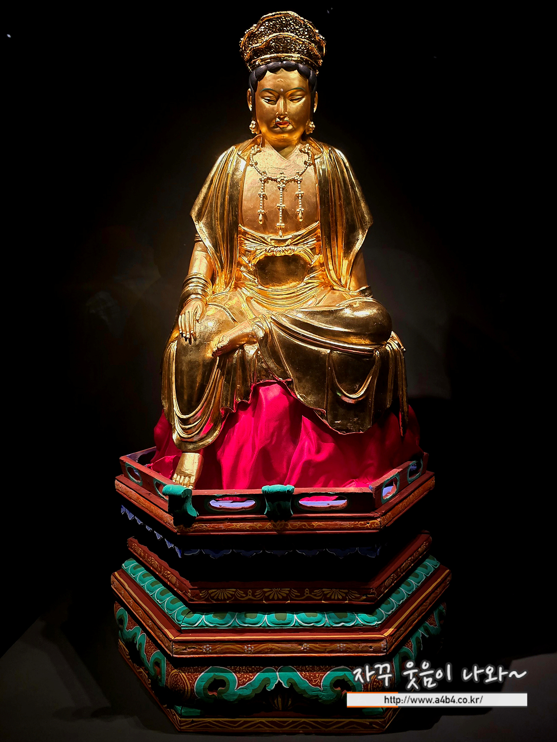 나무에 금칠을 해서인지 이곳 국립중앙박물관에 전시된 다른 금동불상과는 확연하게 다른 발색을 보여줍니다.