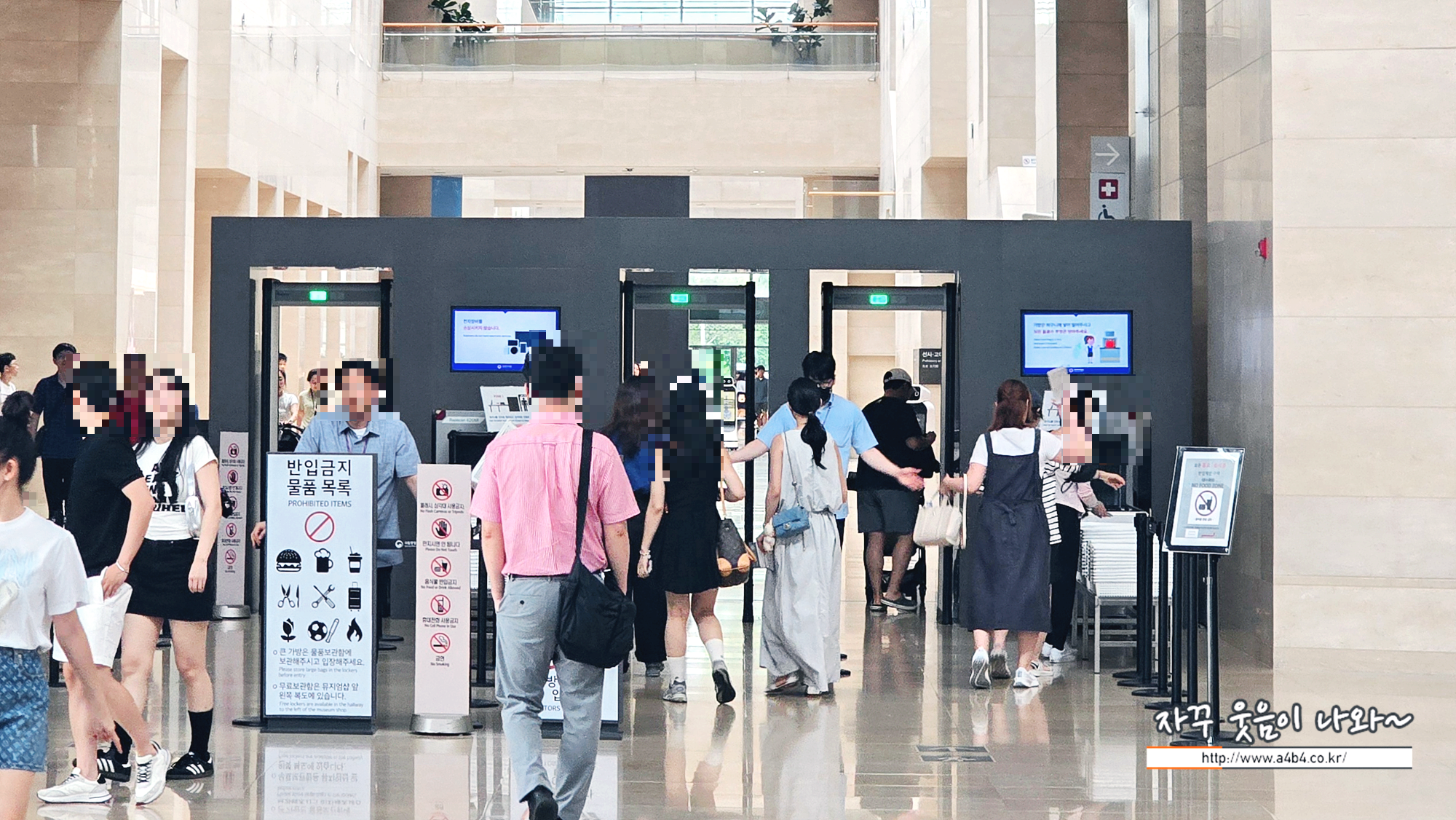 국립중앙박물관 상설 전시실과 특별전시실2 방문하기 위해서는 금속탐지기 통과하셔야 합니다. 가방 없이 방문하시면 그냥 걸어가면서 편하게 통과할 수 있고요. 가방이 있다면 별도 추가 확인이 필요합니다만, 공항 검색대처럼 까다롭지는 않습니다.