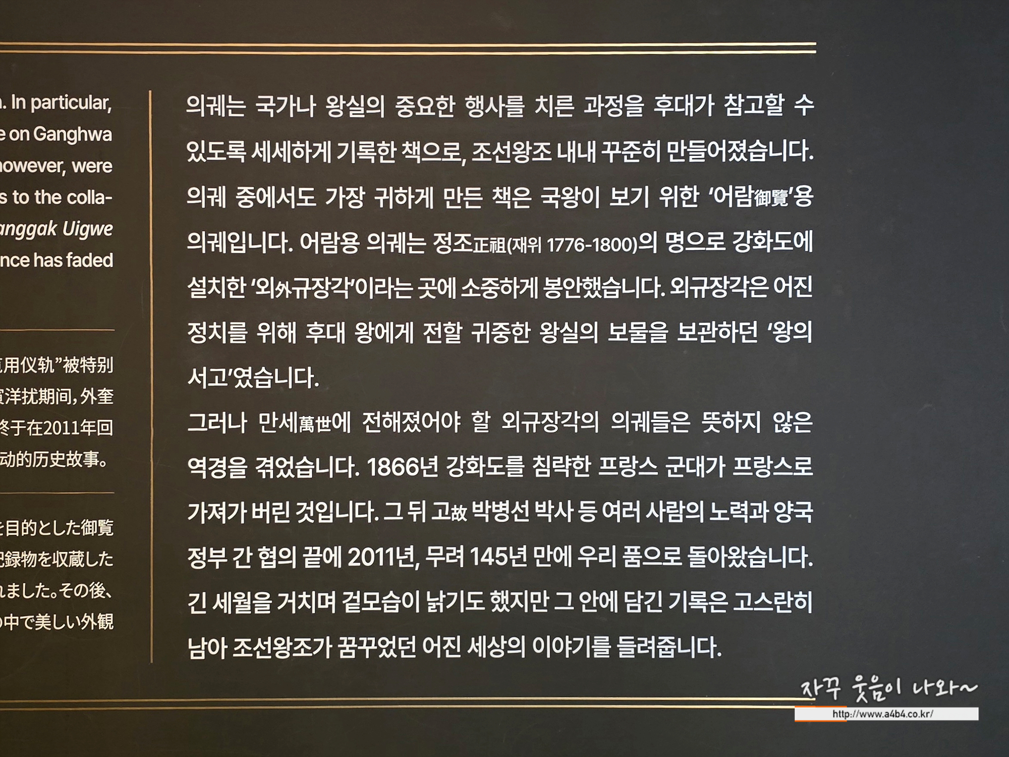 오늘은 '왕의서고' 외규장각 의궤 전시장 위치 및 전시해설 (도슨트)시간 등 관람정보 공유합니다.