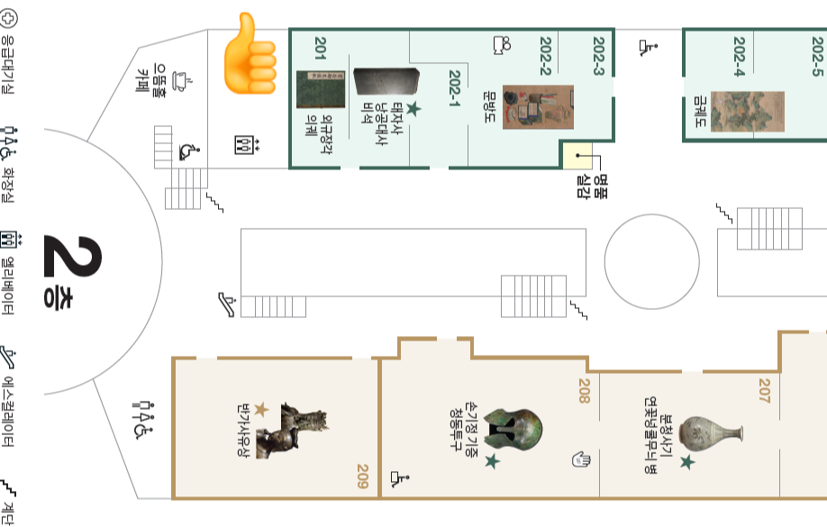 위치는 국립중앙박물관 전시실 2층 201호 입니다. 박물관에서 검색대를 통과하고 바로 왼쪽 2층 맨 첫 방에 전시되어 있습니다. 계단이나 엘리베이터 등으로 이동하시면 되고요.