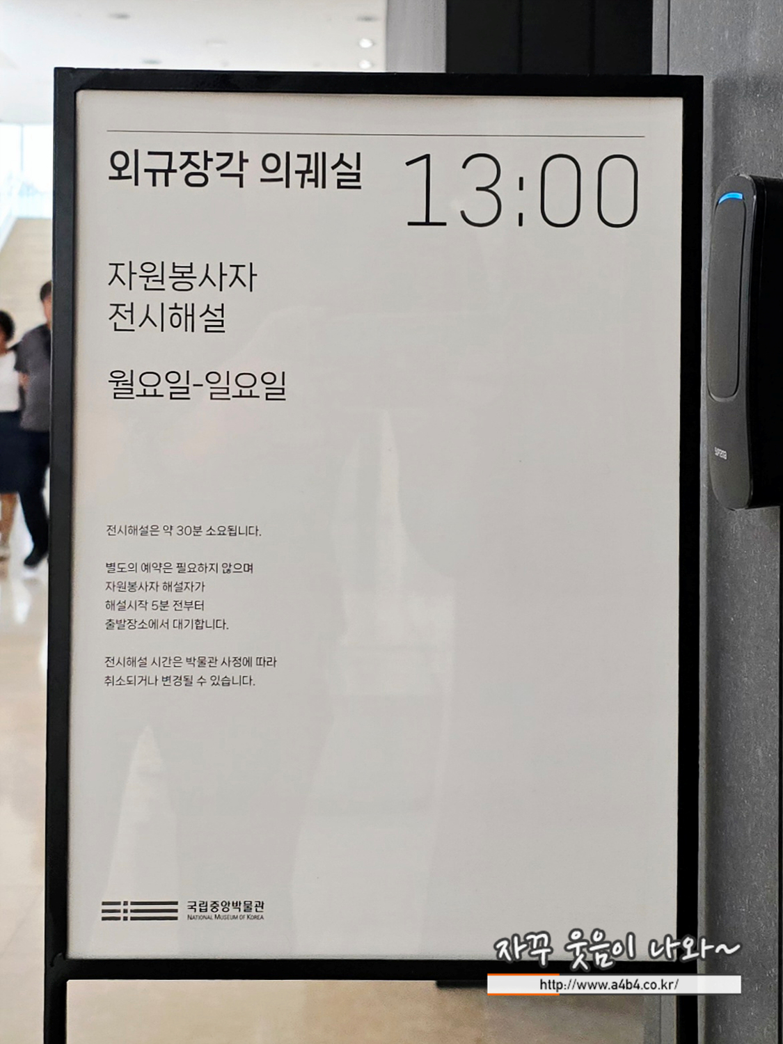 국립중앙박물관 외규장각 의궤 전시 '왕의 서고' 전시회 전시해설은 휴일 없이 매일 13시에 외규장각의궤 도슨트가 진행됩니다. 전시해설 진행시간은 약 30분입니다.