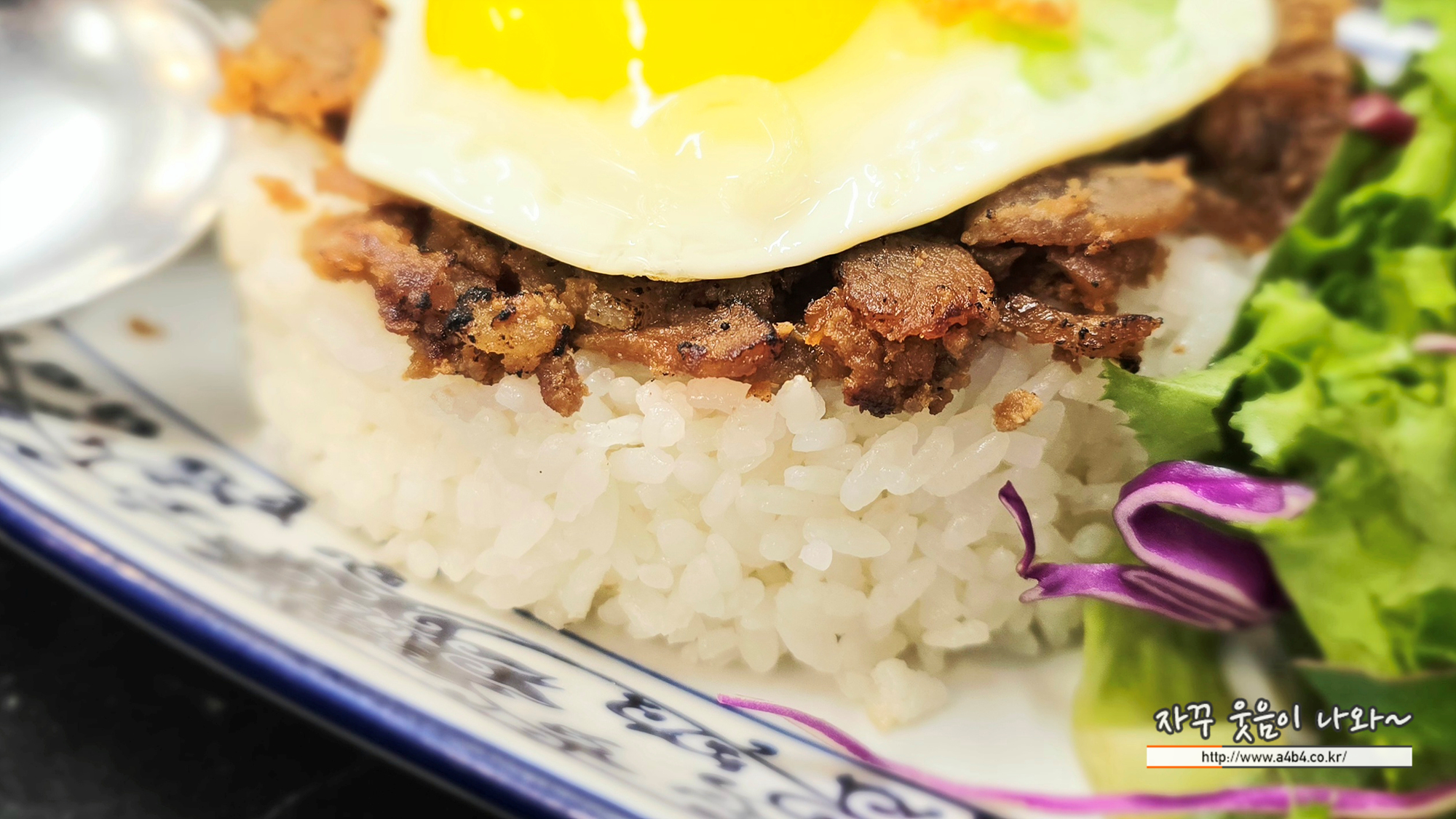 땀땀에서 인기 있는 메뉴 중 하나가 바로 숯불구이 돼지고기 덮밥입니다. 땀땀 음식들이 기본적으로 양이 많고 푸짐하고 국물과 면, 밥이 리필되다 보니, 두 명이 오면 한 명은 베트남 쌀국수를 다른 한 명은 분짜나 덮밥류를 많이 주분합니다.