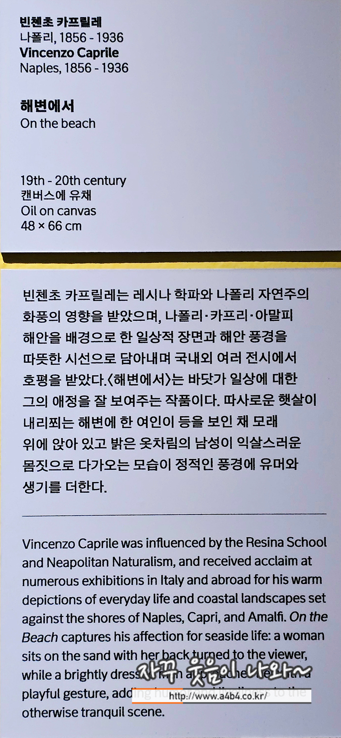 이번 마이아트 뮤지엄 이탈리아 국립 카포디몬테 미술관 19세기 컬렉션 : 나폴리를 거닐다 전시회 대표작품인 '해변에서'