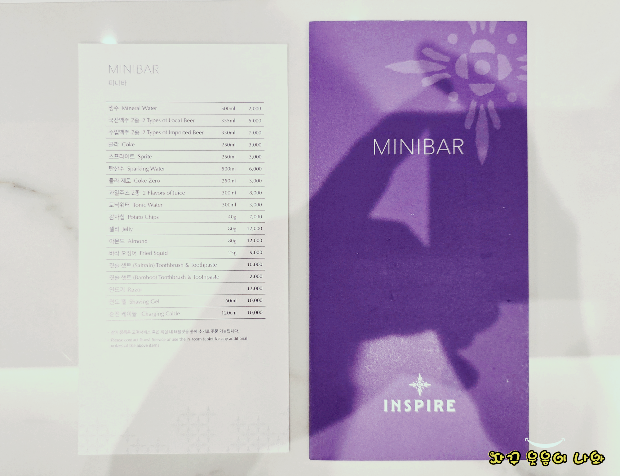 인스파이어 리조트 호텔 미니바 가격은 아래 사진 참고