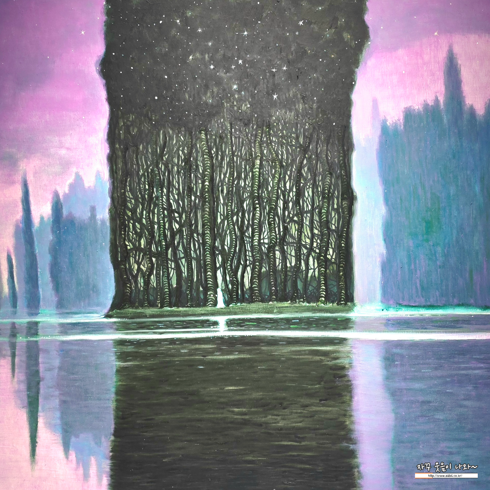 모든 경계가 사라진 곳, 숲은 빛과 어둠의 언어로 자신을 비춘다. 수면 아래 잠든 진실이 나뭇결 사이로 속삭이며 되살아난다. 거울 같은 물은 기억을 품고, 나무는 그 위에 시간을 새긴다.