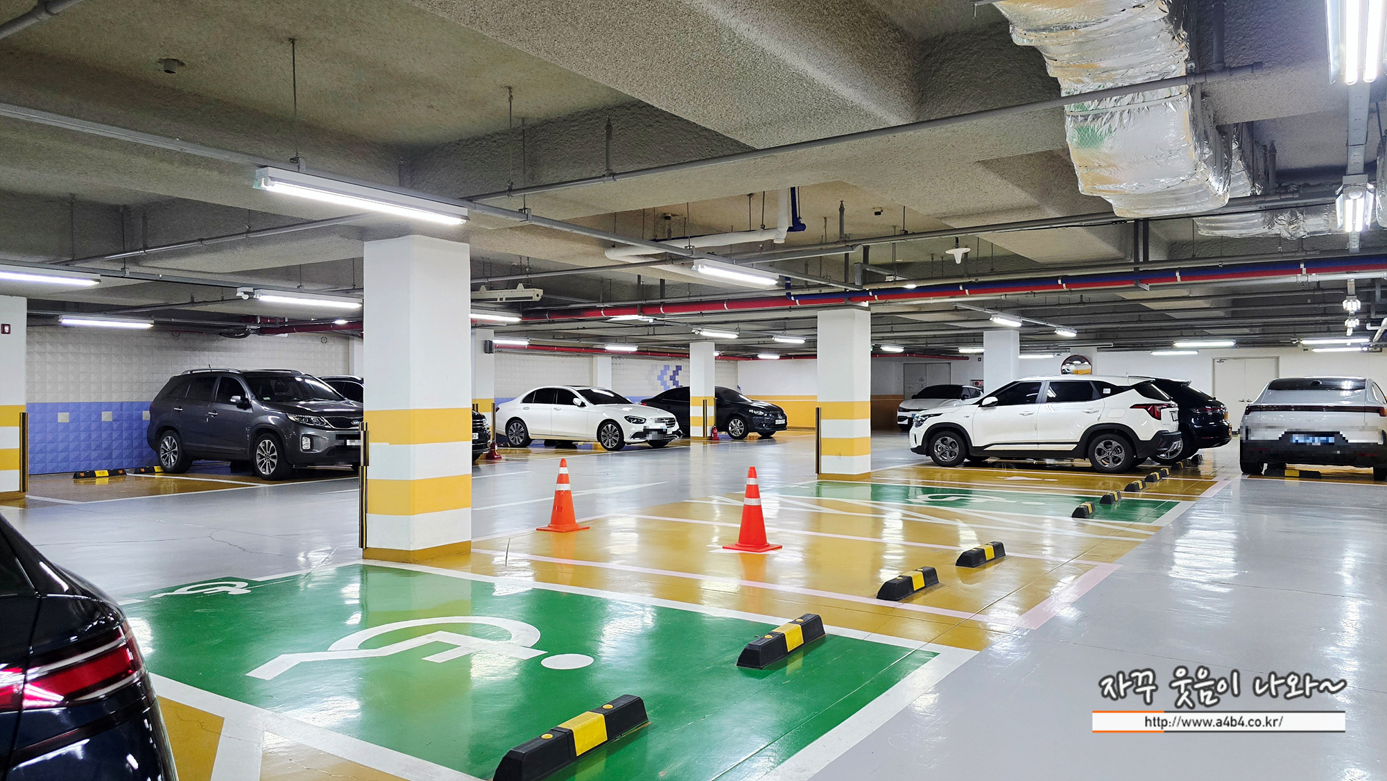 지하 2개층의 주차장으로 진출입로 경사나 급커브가 있지는 않습니다. 주차장 진출입 난이도는 보통 수준으로 큰 어려움 없습니다.