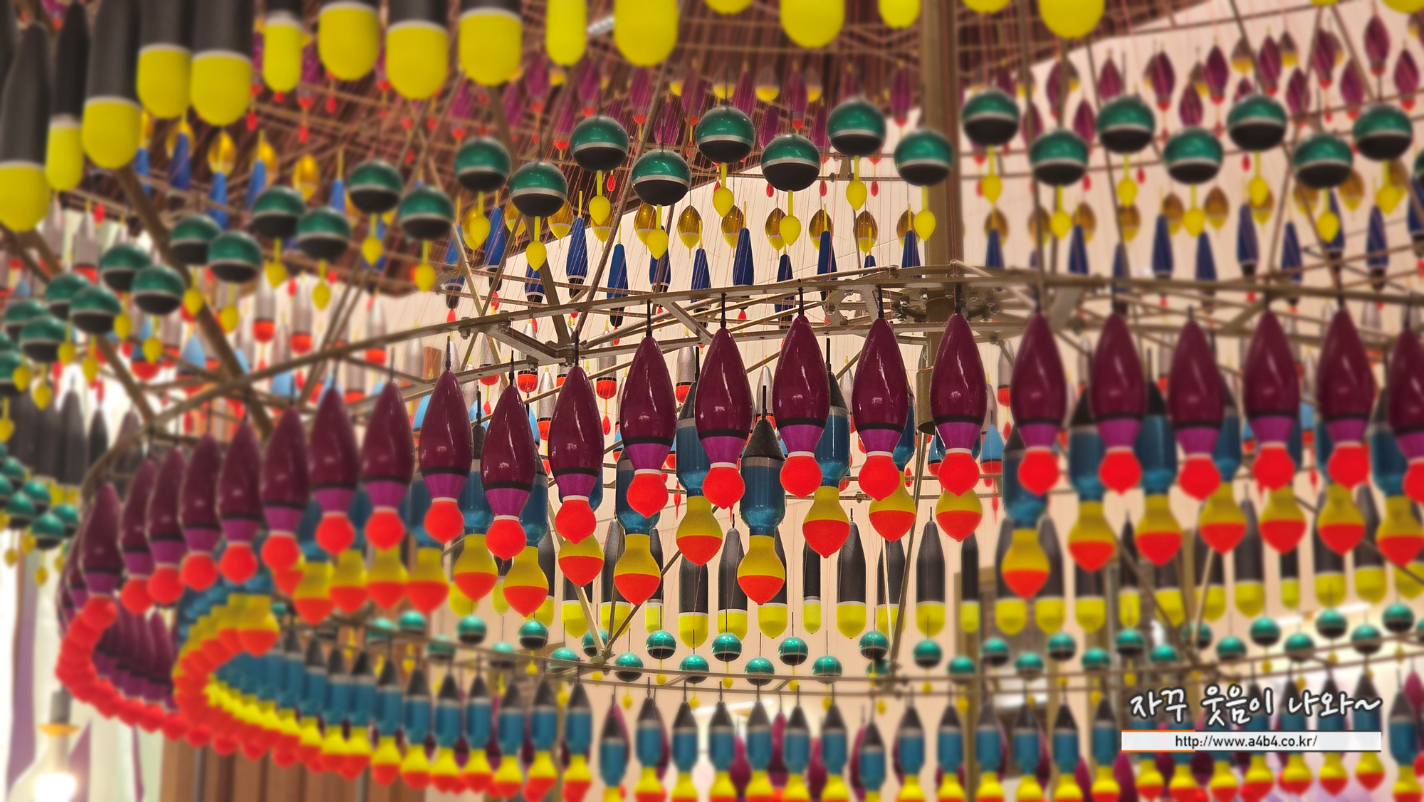 바로 다양한 낚시 찌로 만든 작품입니다.