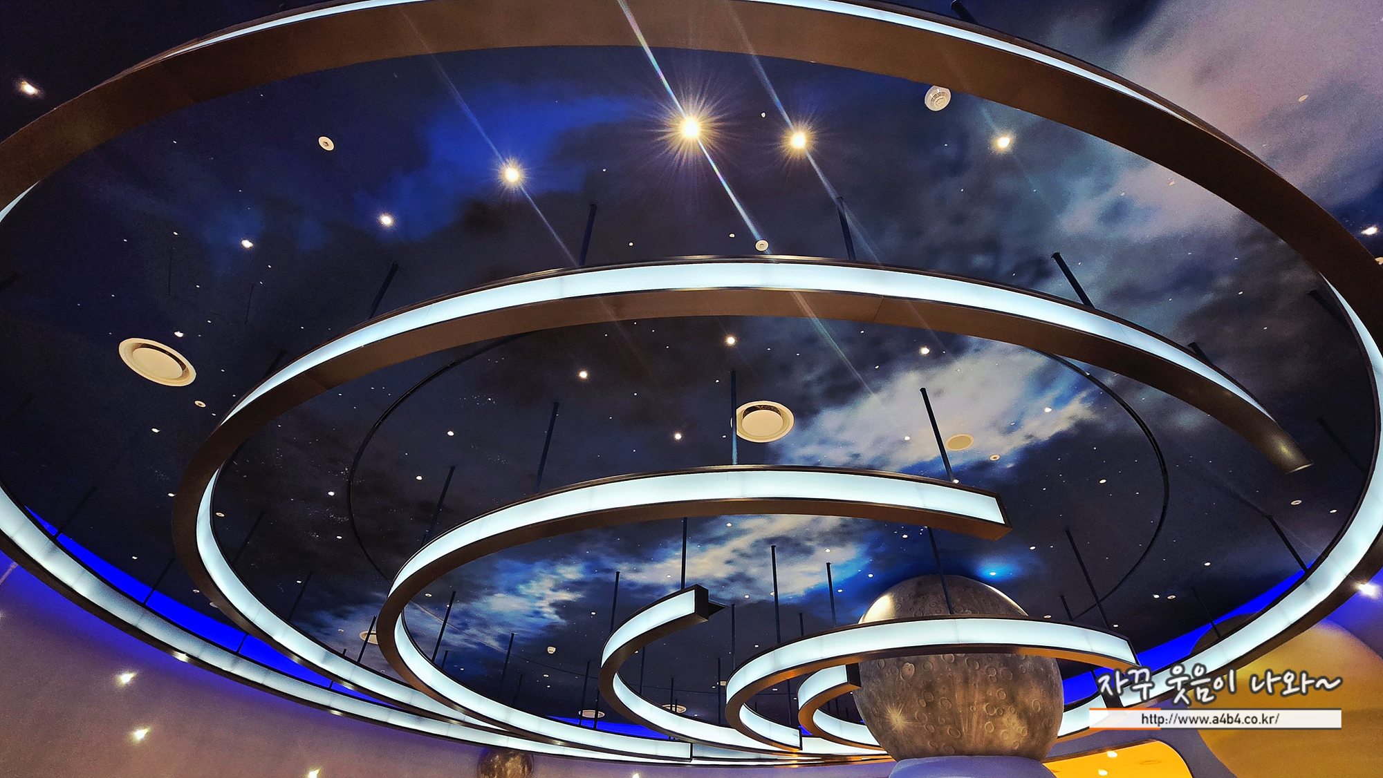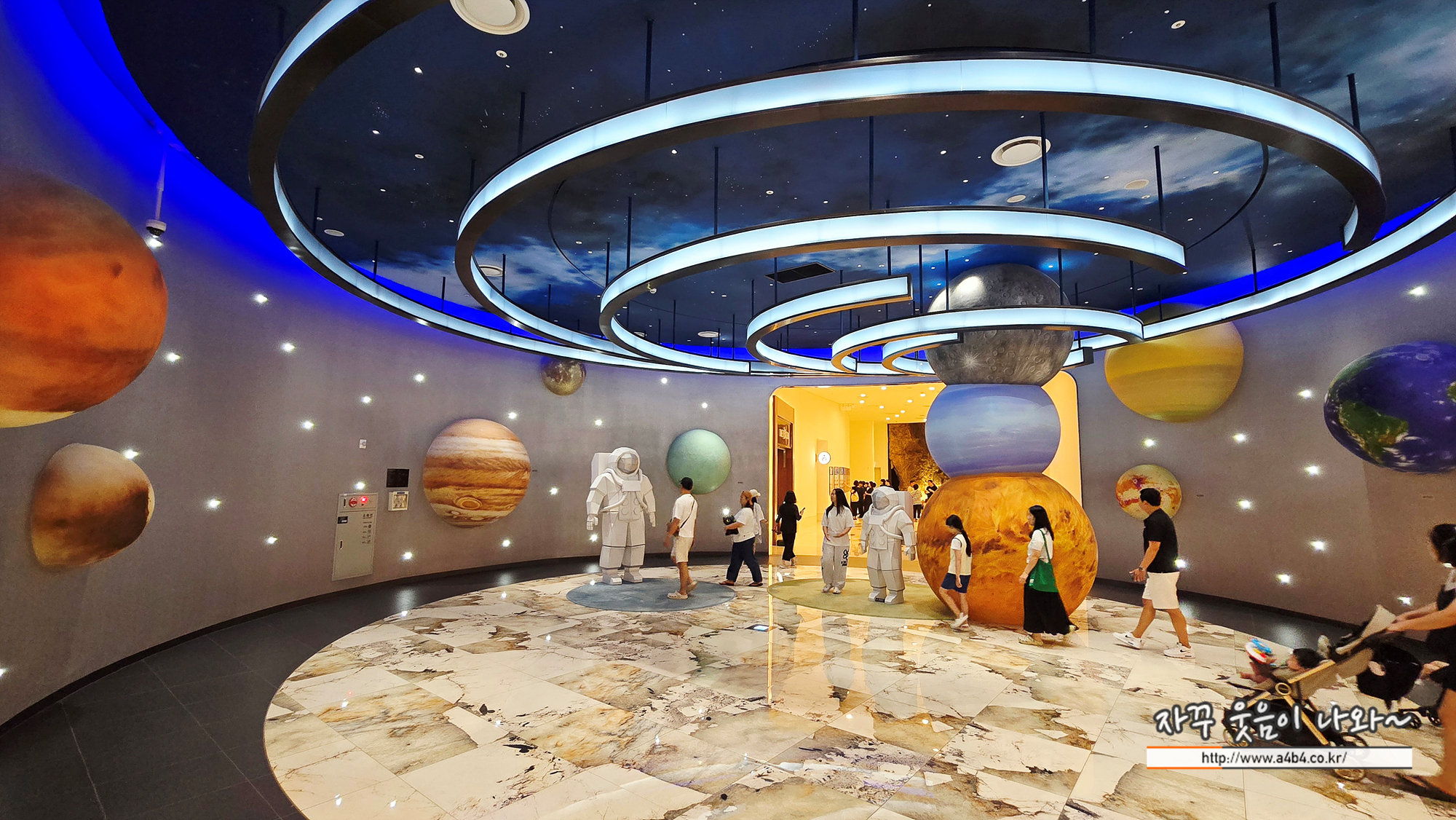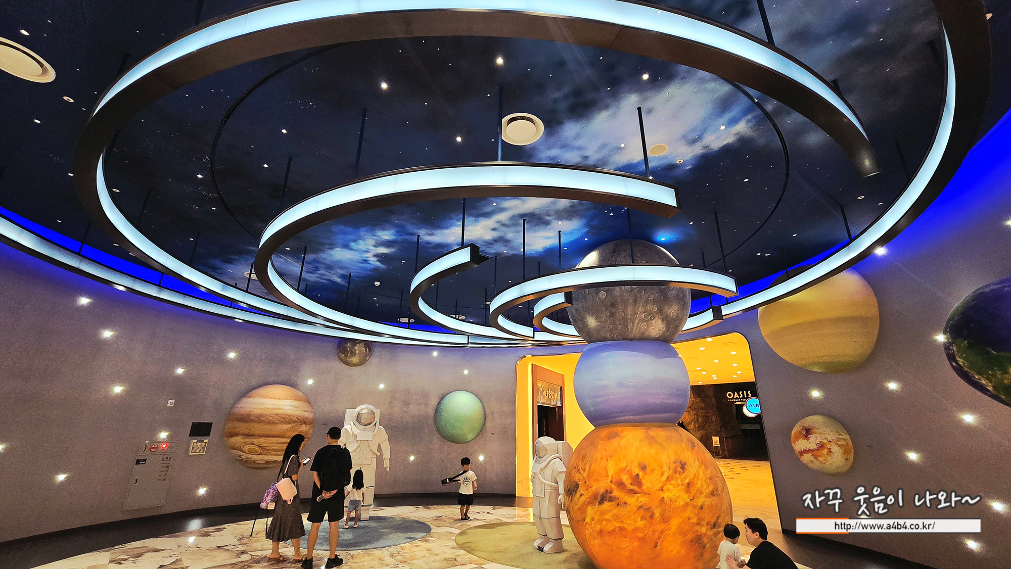 우주를 모티프로한 공간에 행성들과 거대한 우주인 조형물이 설치되어 있고요.