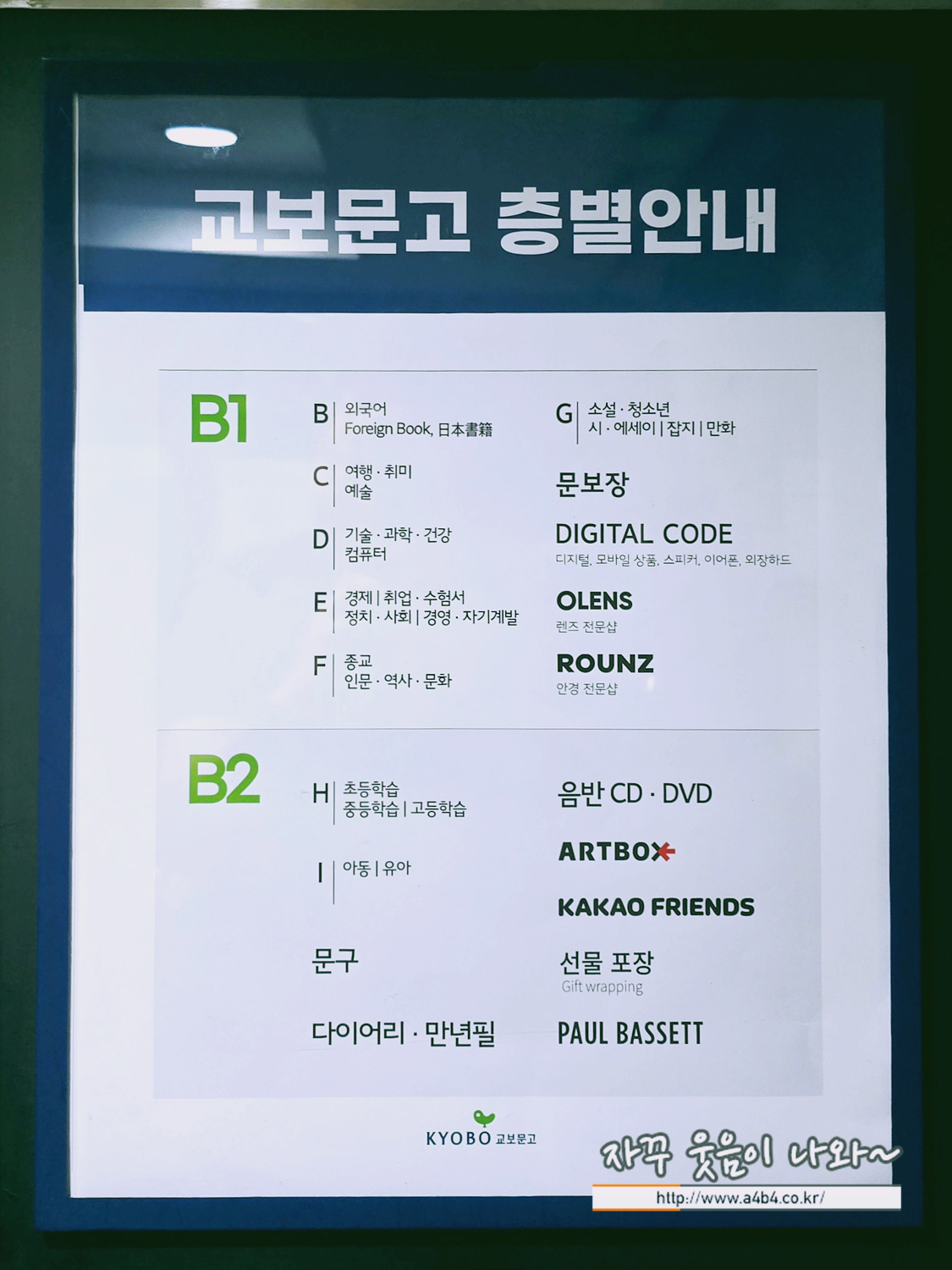 그리고 제가 좋아하는 문보장 교보문고 강남점이 지하 1층에 있습니다.