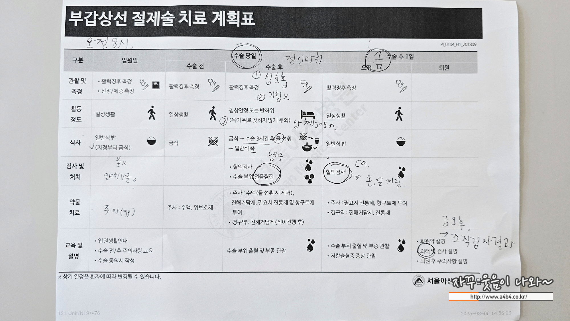 지난 부갑상선 낭종 수수술후기, 오늘은 갑상선 수술을 위해 서울아산병원 입원 당일 이야기입니다.