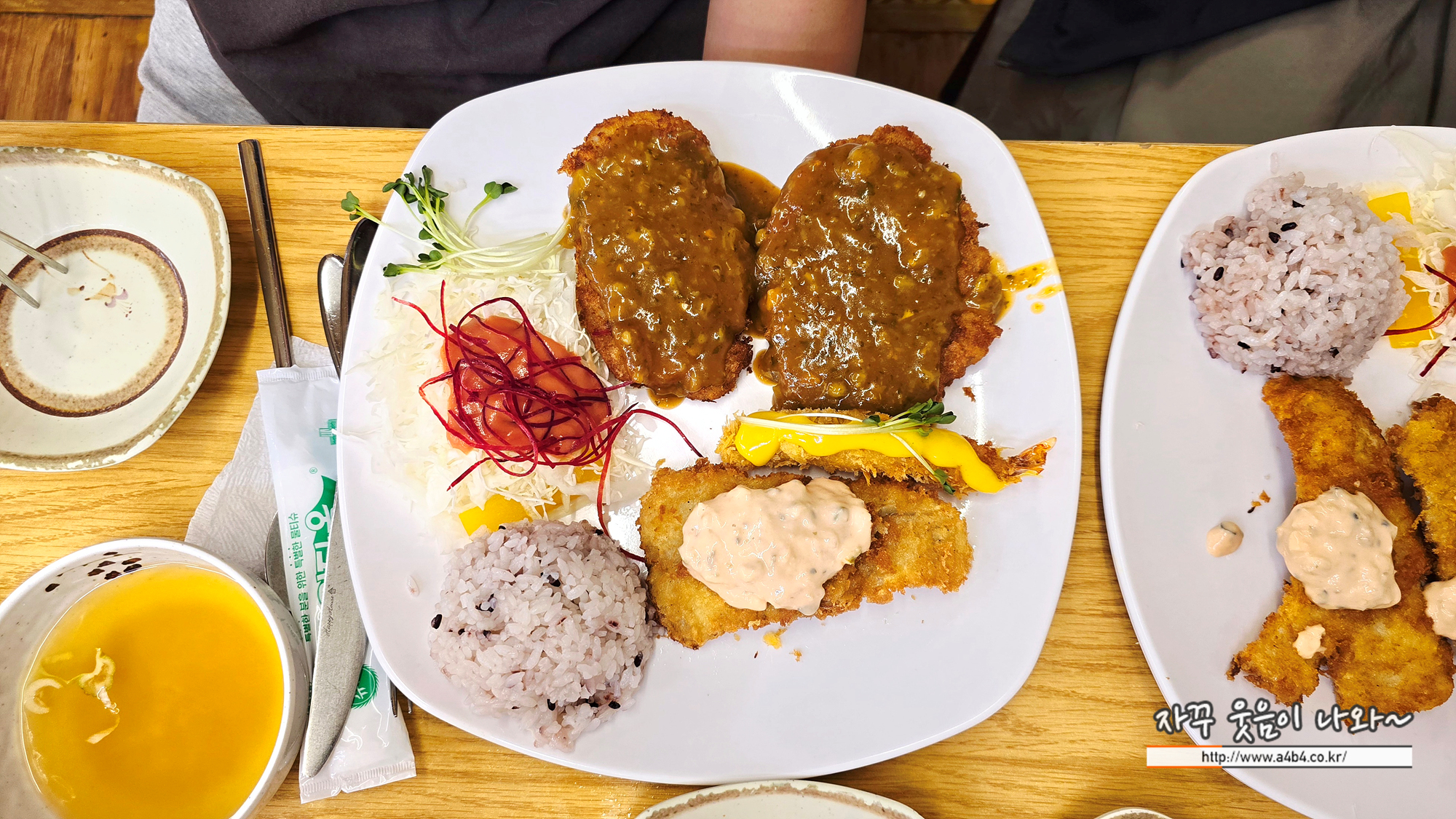 돈까스와 생선까스, 새우튀김이 세트로 나오는 정식까스입니다.