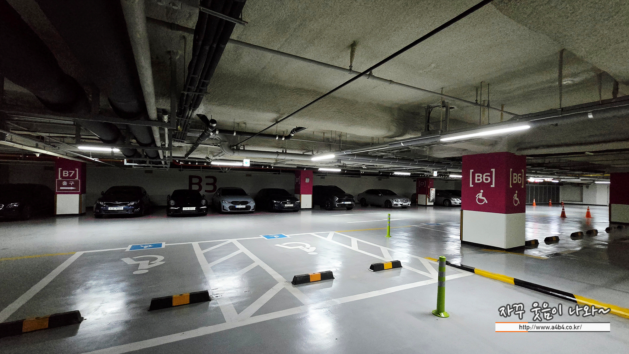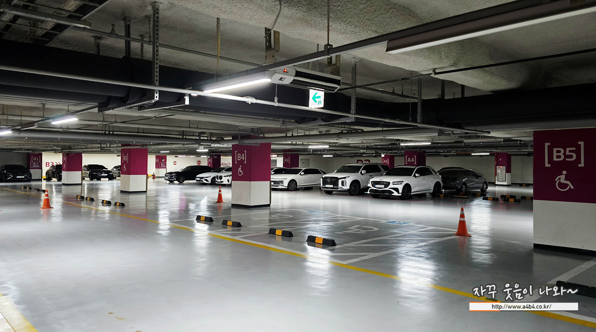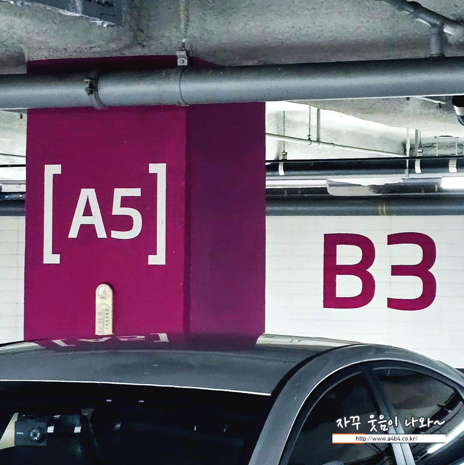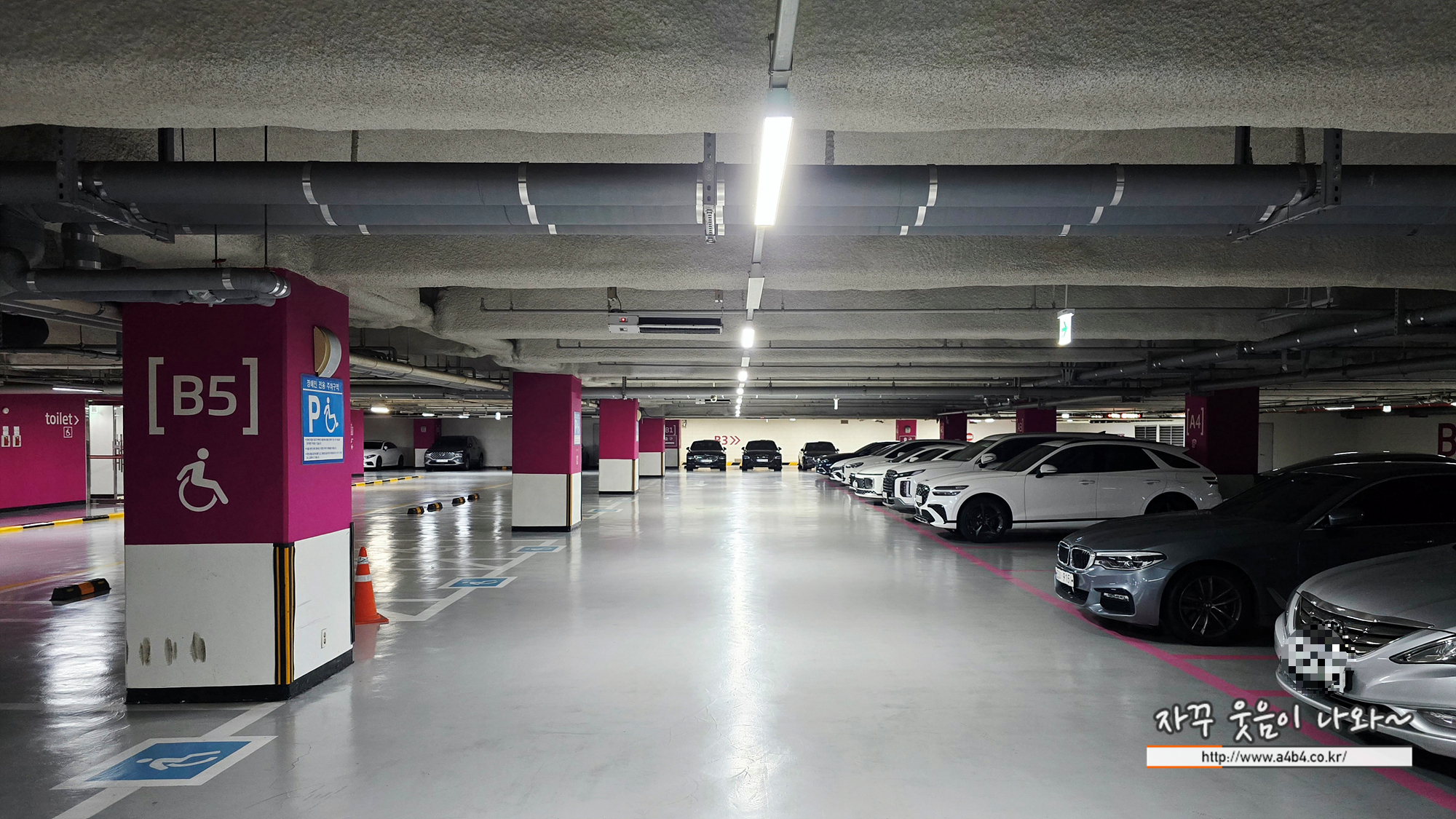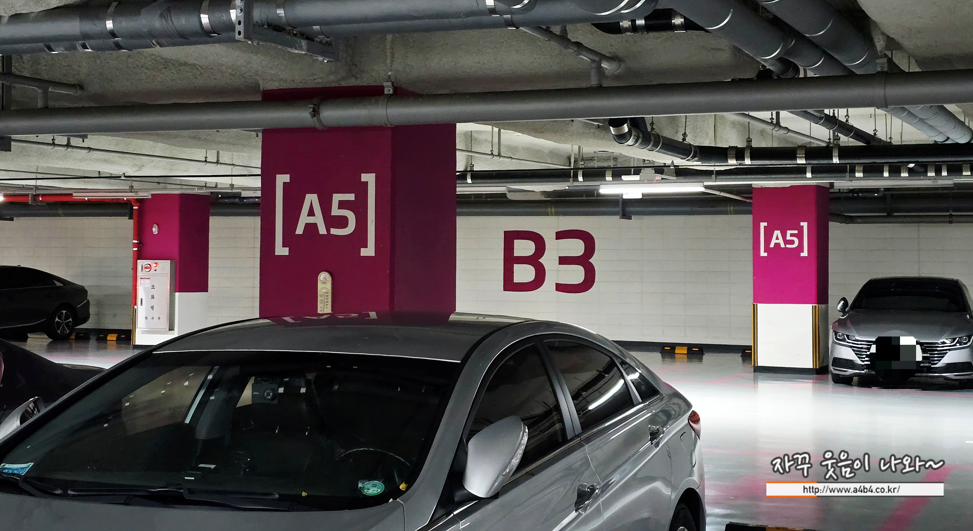 층과 구역 기호가 동일합니다. 처음 보통 기둥에 층과 구역을 동시에 표시하는데, 이곳은 구역만 표시되어 있습니다. 또한 구역도 B2, B3, B4, B5... 기호도 있으니 주차하신 층하고 혼돈하지 마세요.