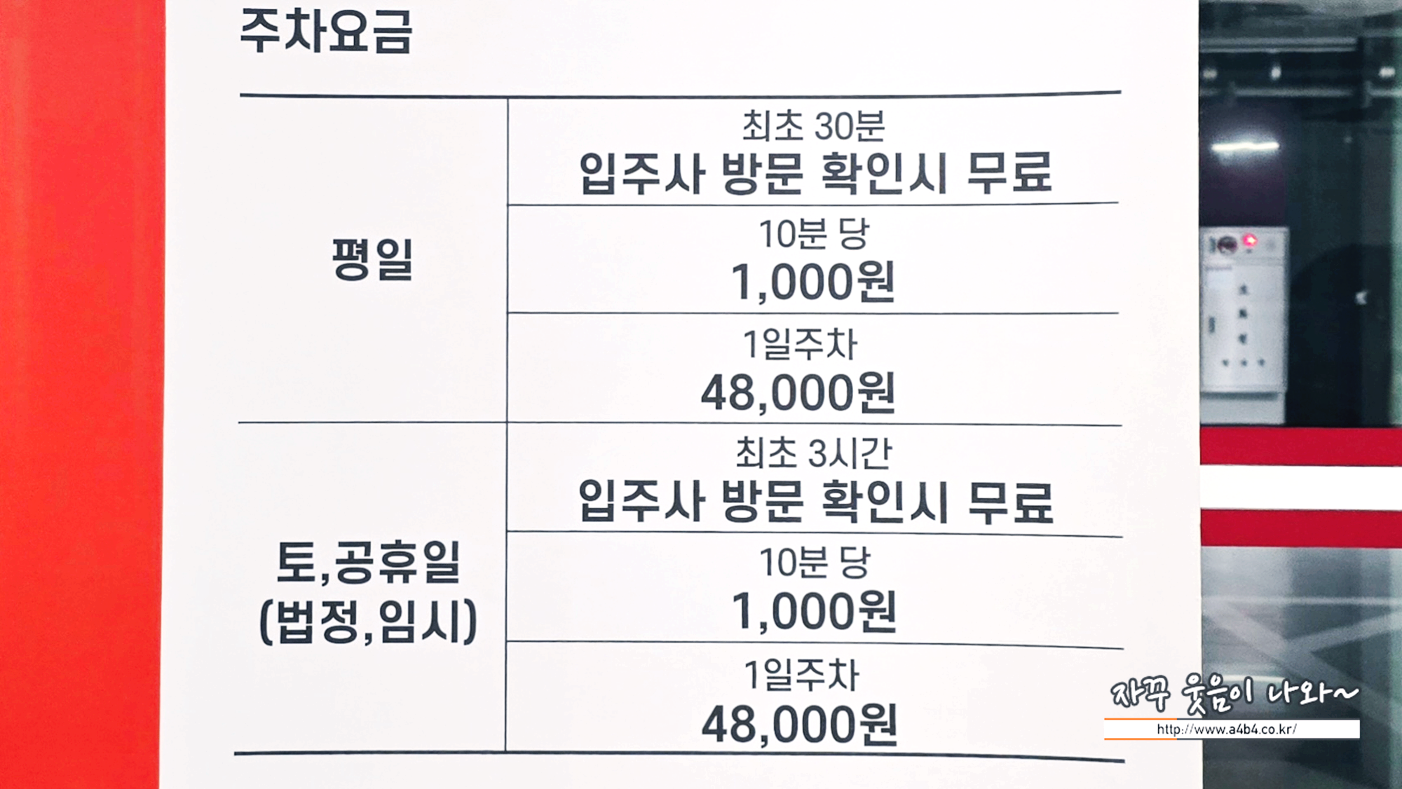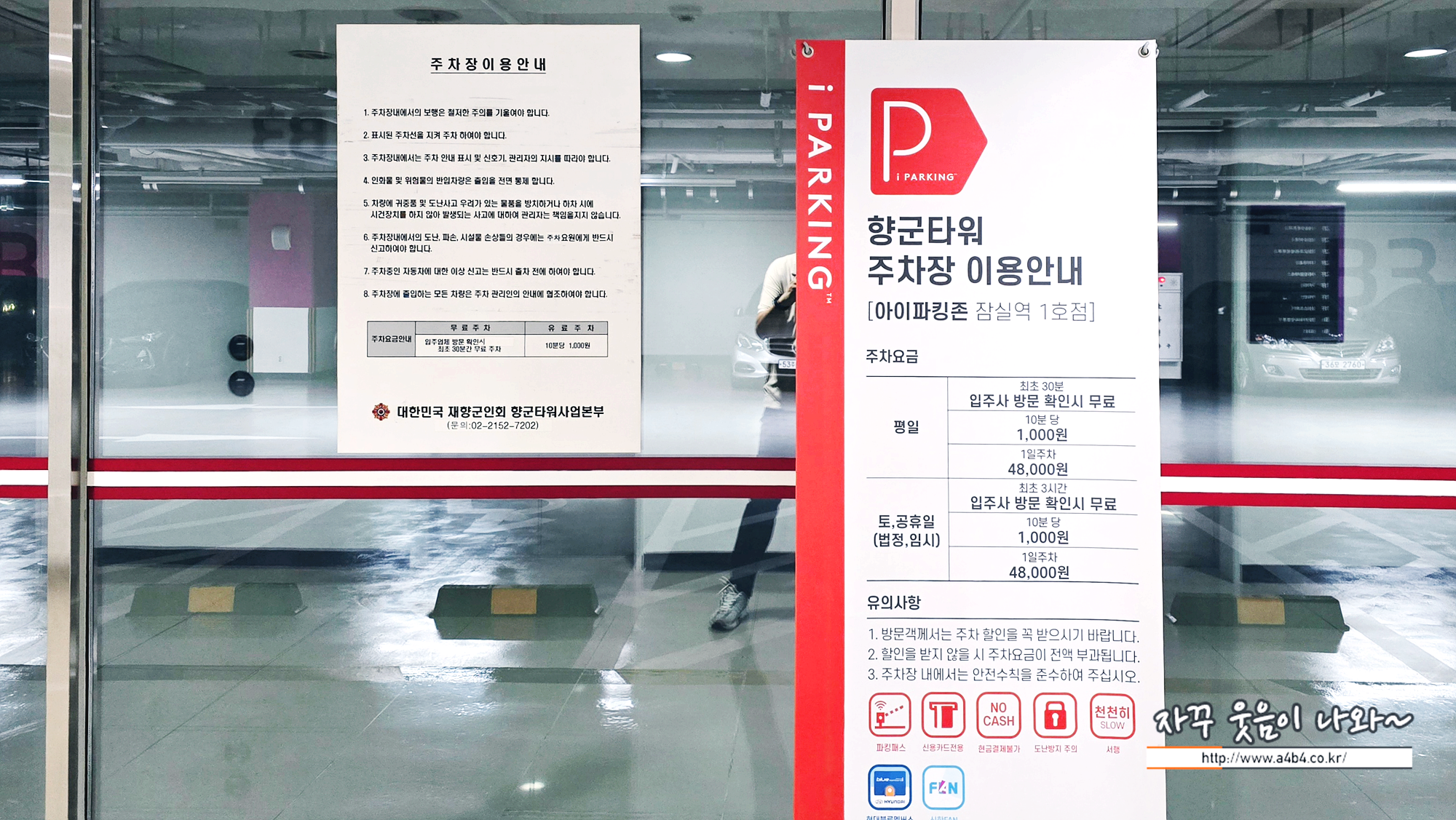 다만 무료주차시간이 평일과 주말, 공휴일 상이합니다. 평일 무료주차는 30분 가능하지만, 토요일, 일요일 공휴일 잠심향군타워 무료주차는 3시간 가능합니다. (입주사 및 매장 이용시)