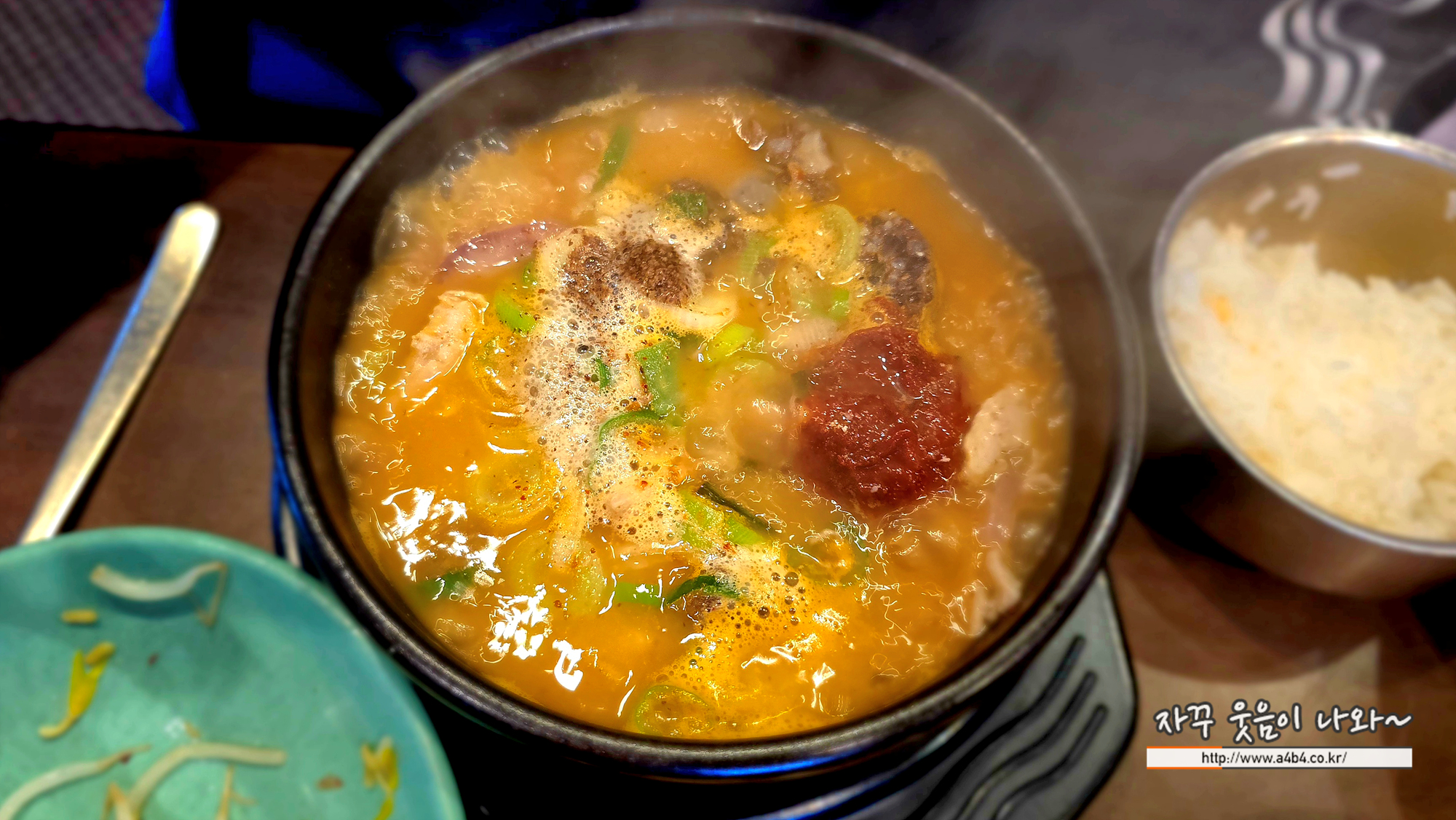 청와옥 순대국은 맑은 순대국이 아닌 기본 매운 다대기가 들어간 순대국입니다. 기본이 어느정도 얼큰함을 가지고 있고요. 매운 순대국은 정말로 매우니 주문에 참고하세요. 아마도 다대기가격 1,000원이 추가된 듯...