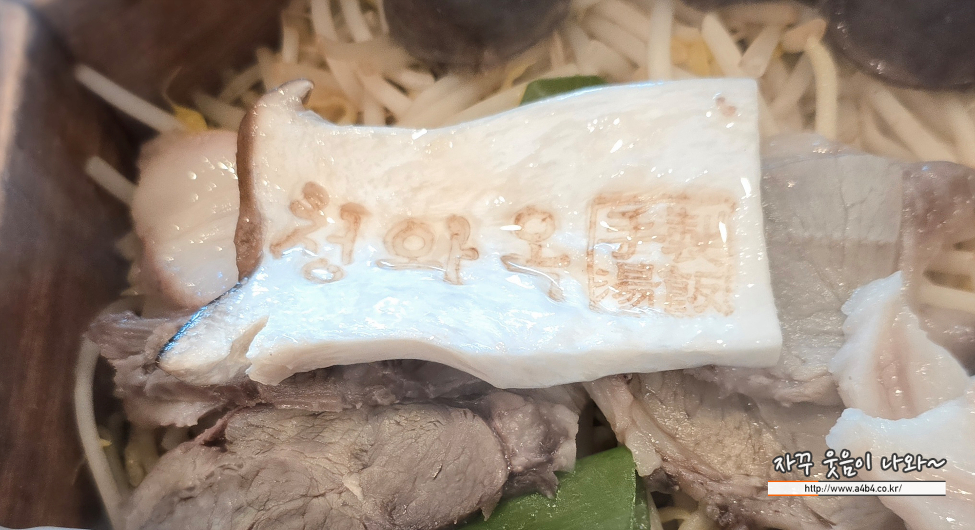 청와옥이 찍힌 새송이버섯과 숙주나물. 수육과 순대가 나오는데요.