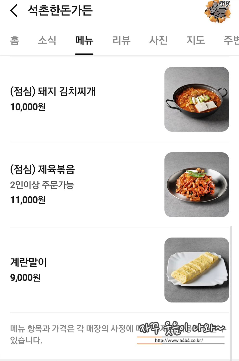 | 석촌한돈가든 메뉴 및 가격