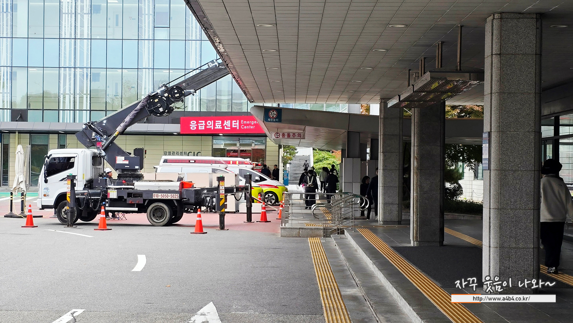 사진속 오른쪽 건물이 아산병원 응급의료센터 건물입니다. 공사중으로 잘 보이지도 않네요.