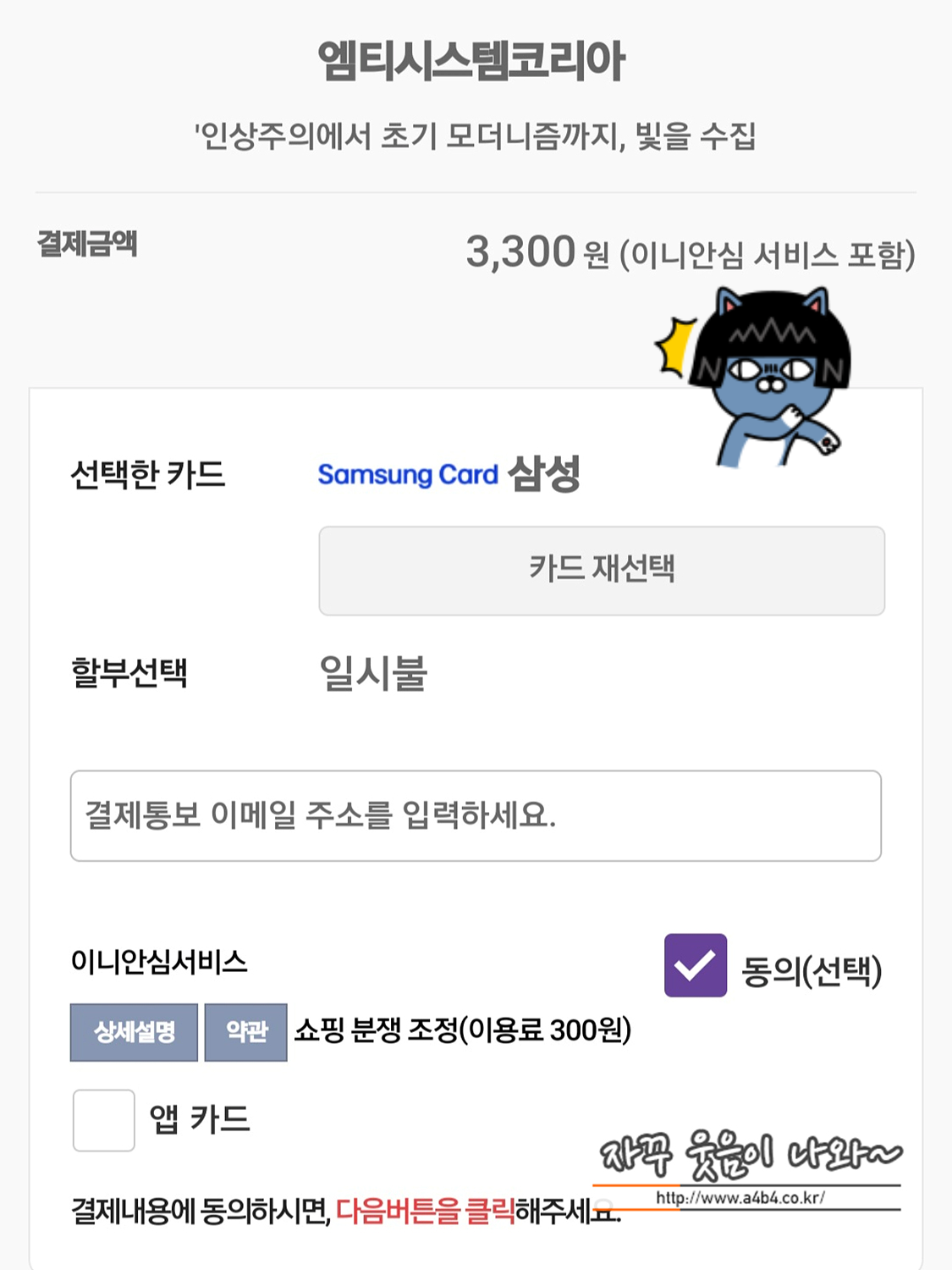 그러나 결제 과정에서 아무 생각없이 승인 > 승인 진행하면 300원 추가결제 될 수 있습니다. 뭐 거의 다크패턴 수준의 악독한 결제프로세스가 보이네요.