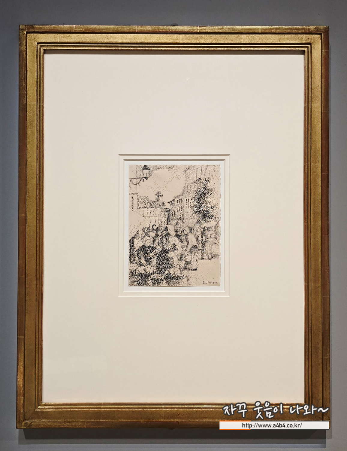 1886년 조르주 쇠라가 점묘법을 선보이던 때, 카미유 피사로도 점을 활용한 표현을 드로잉에 적용했다. 그는 몇 년 전 퐁투아즈에서 보냈던 시간을 떠올리며 시골 마을의 시장 풍경을 그렸다. 피사로는 국가 주도의 자본주의를 비판하고, 농업 중심의 자율적 시장 경제를 지지한 화가였다. 작은 점으로 화면을 구성하는 점묘법은 그에게 전통 화법을 흔드는 급진적이고 새로운 실험이었다.