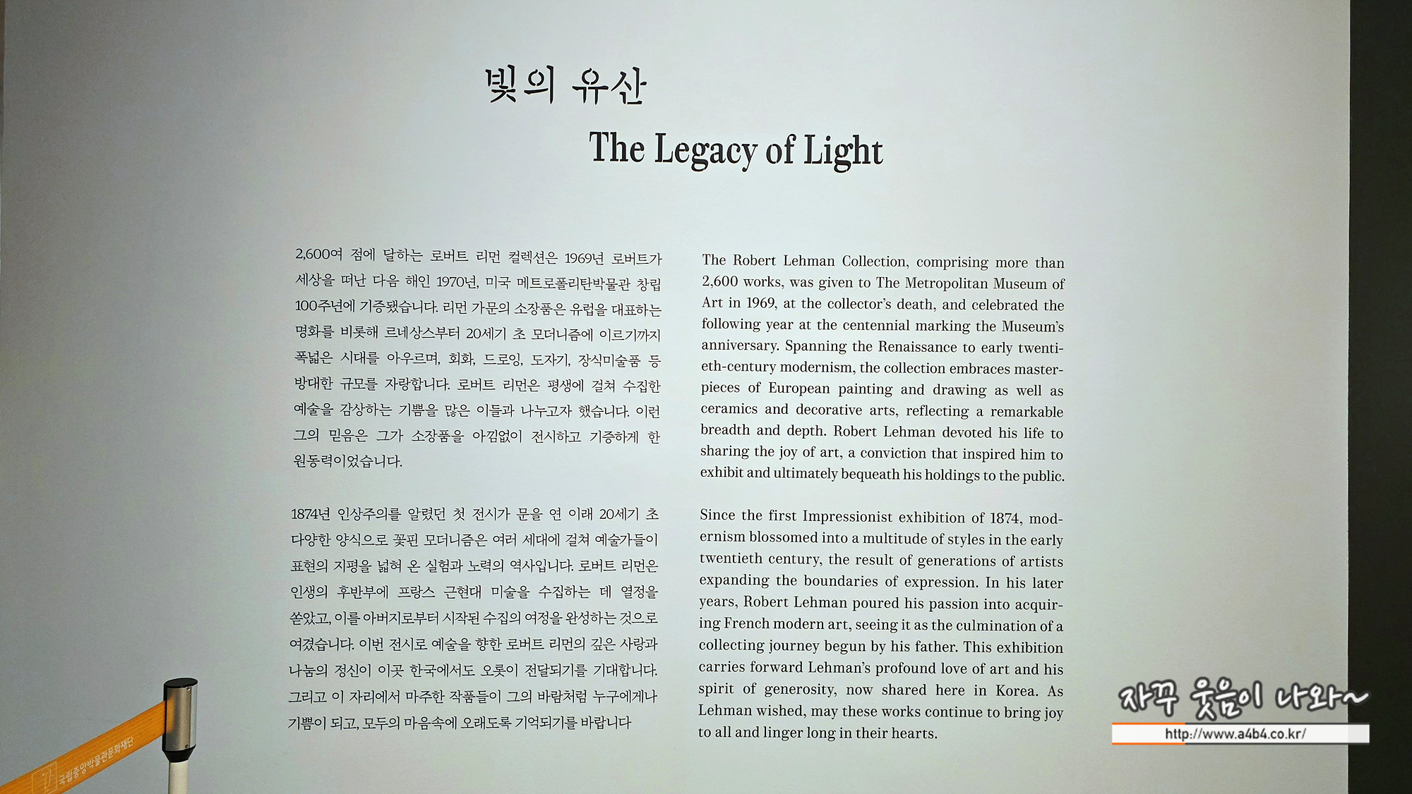 국립중앙박물관 특별전시실에서 열리고 있는 인상주의에서 초기 모더니즘까지, 빛을 수집한 사람들 - 메트로폴리탄박물관 소장 로버트 리먼 컬렉션 관람후기입니다. 이번 전시회는 뉴욕의 메
