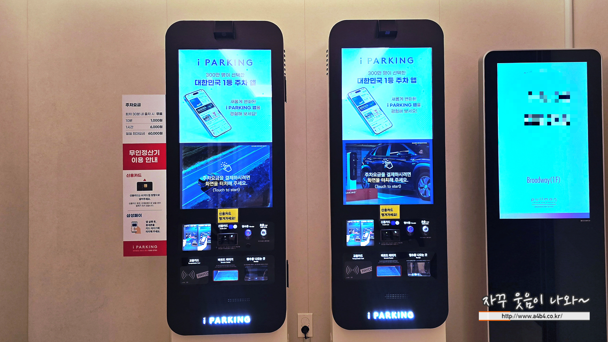 저는 풀만 앰배서더 서울 이스트폴 조찬모임 행사장에서 주차요금할인을 받아 아래 정산기를 이용하지는 않았습니다.